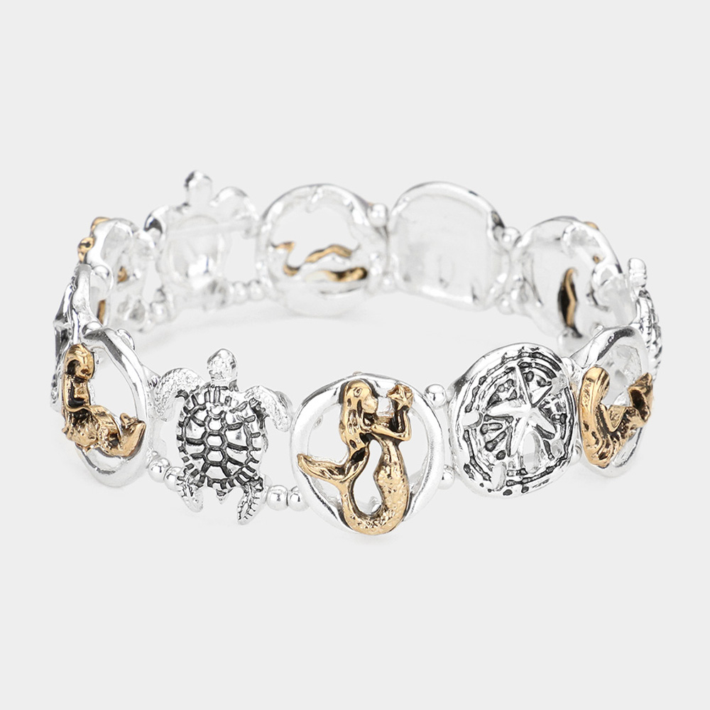 Sea Life Antique Metal Pendant Link Stretch Bracelet