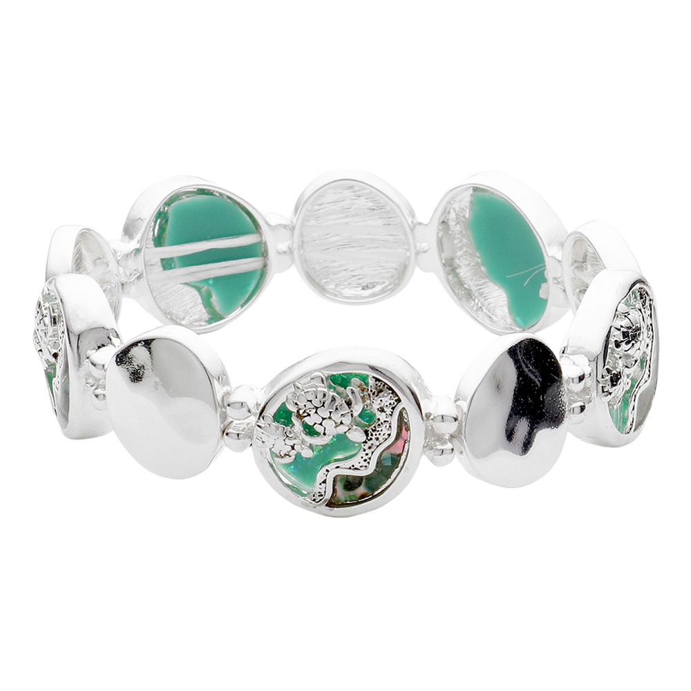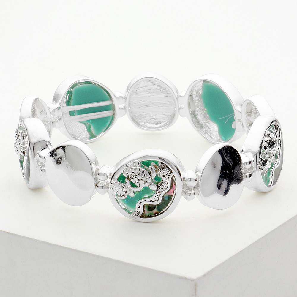 Sea Turtle Embossed Metal Disc Link Stretch Bracelet