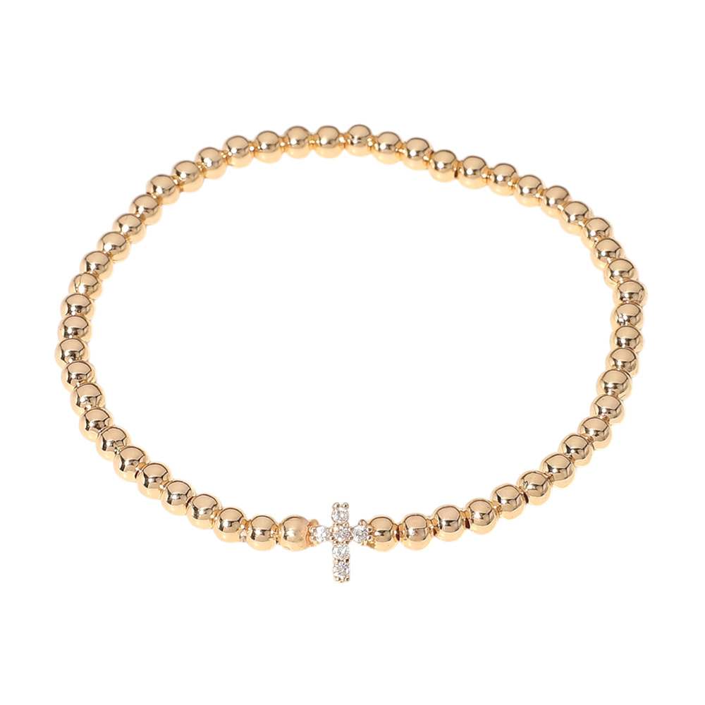 SECRET BOX_Stone Paved Cross Brass Ball Beaded Stretch Bracelet