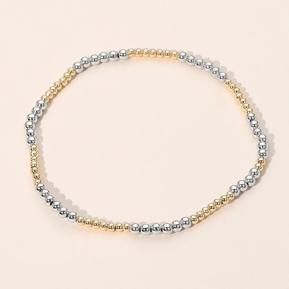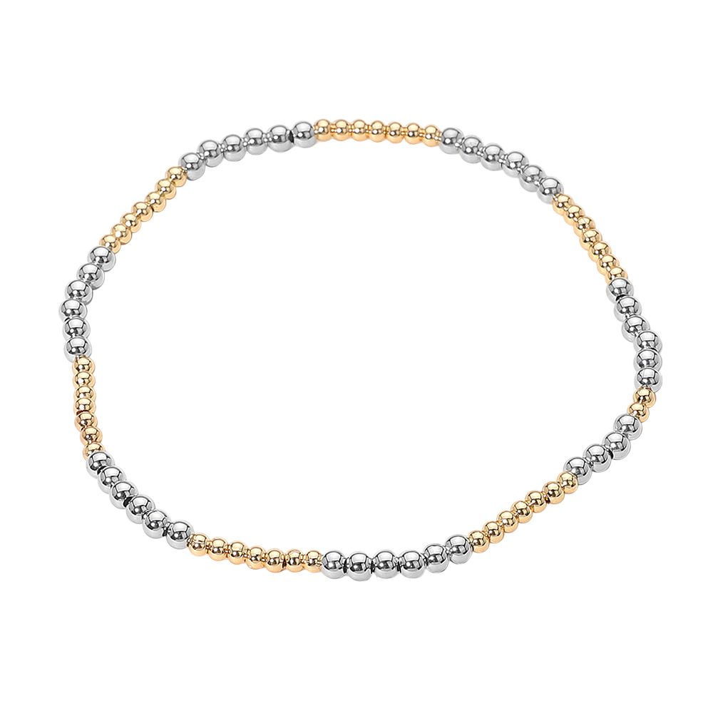 • Slim stretch bracelet with mixed metallic beads for a sleek, understated finish. Ideal for stacking or wearing solo, offering effortless elegance for daily or evening wear.