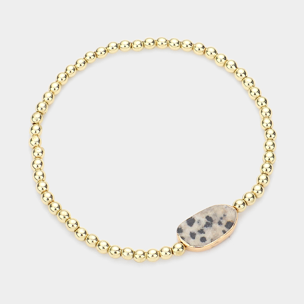 Semi Precious Accented Metal Ball Stretch Bracelet