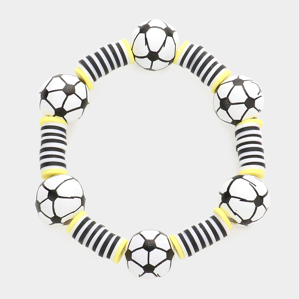 Soccer Accented Heishi Beaded Stretch Bracelet