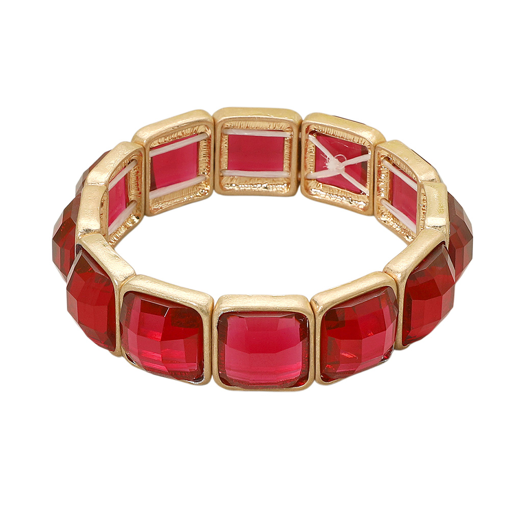 Details • Size : 0.6" H • Stretchable • Chic stretch bracelet featuring square-cut faceted gems in a polished gold-tone setting. Easy to wear with elastic band for a secure and comfortable fit. A statement accessory perfect for dressing up any look. • Lead and Nickel Compliant