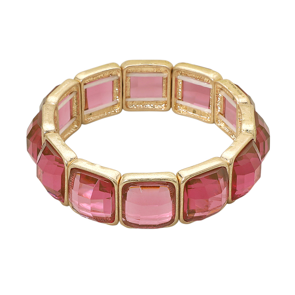 • Chic stretch bracelet featuring square-cut faceted gems in a polished gold-tone setting. Easy to wear with elastic band for a secure and comfortable fit. A statement accessory perfect for dressing up any look.