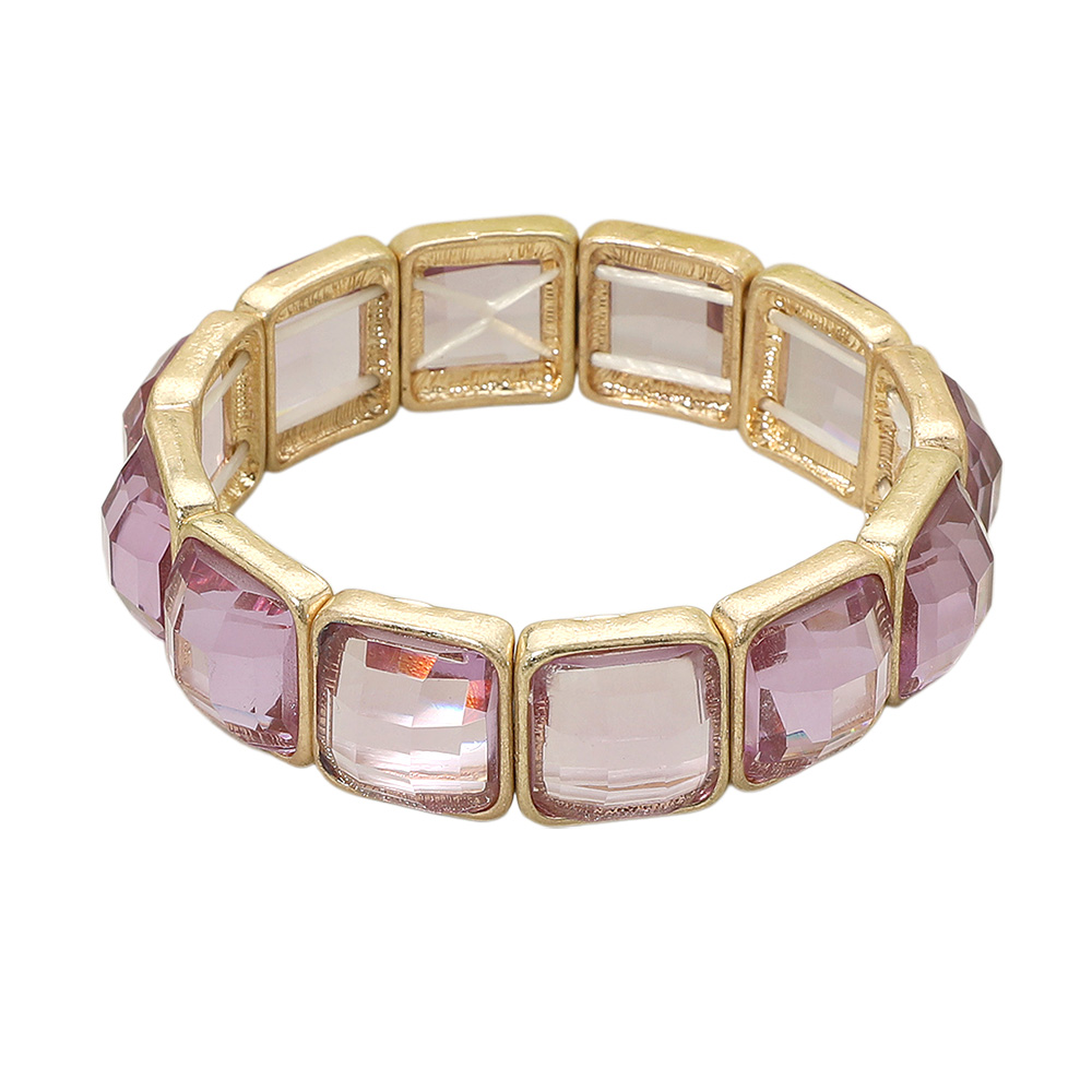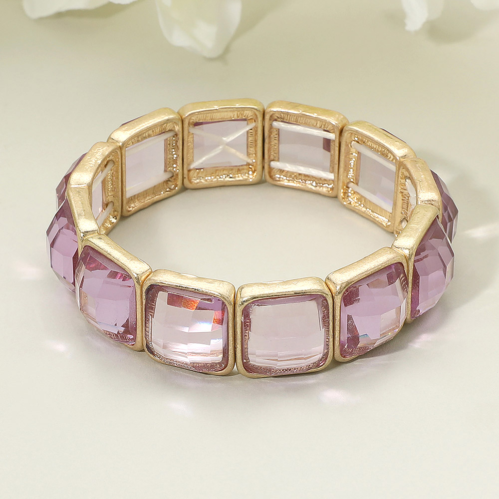 Details • Size : 0.6" H • Stretchable • Chic stretch bracelet featuring square-cut faceted gems in a polished gold-tone setting. Easy to wear with elastic band for a secure and comfortable fit. A statement accessory perfect for dressing up any look. • Lead and Nickel Compliant
