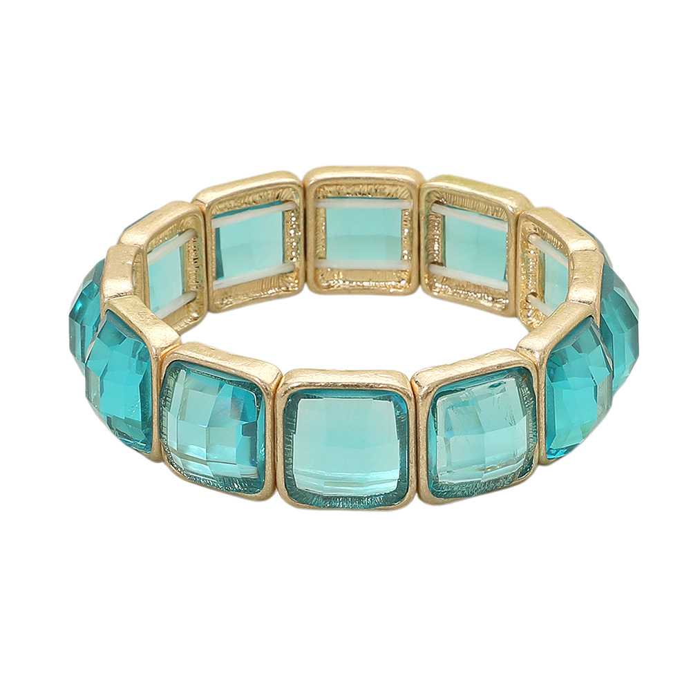 • Chic stretch bracelet featuring square-cut faceted gems in a polished gold-tone setting. Easy to wear with elastic band for a secure and comfortable fit. A statement accessory perfect for dressing up any look.