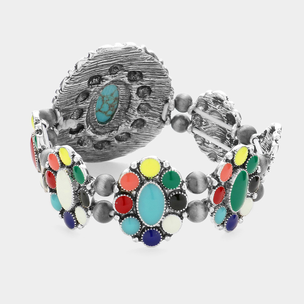 Squash Blossom Natural Stone Accented Stretch Bracelet