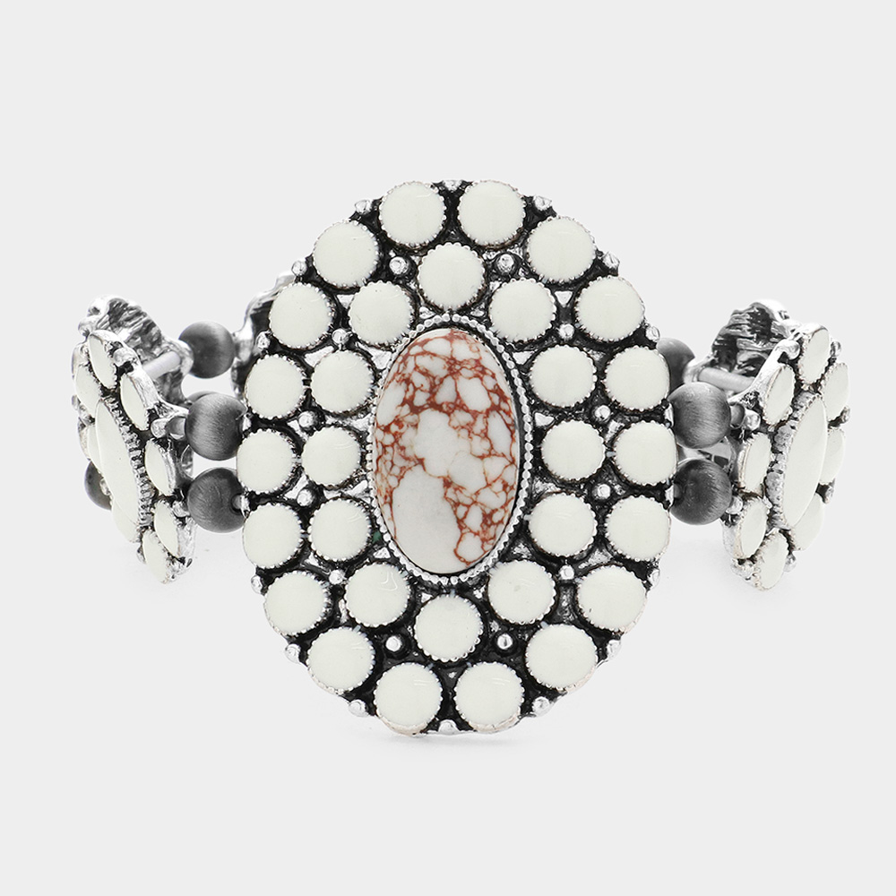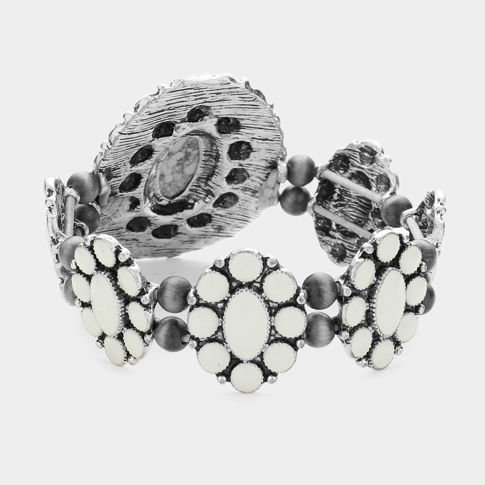 Squash Blossom Natural Stone Accented Stretch Bracelet