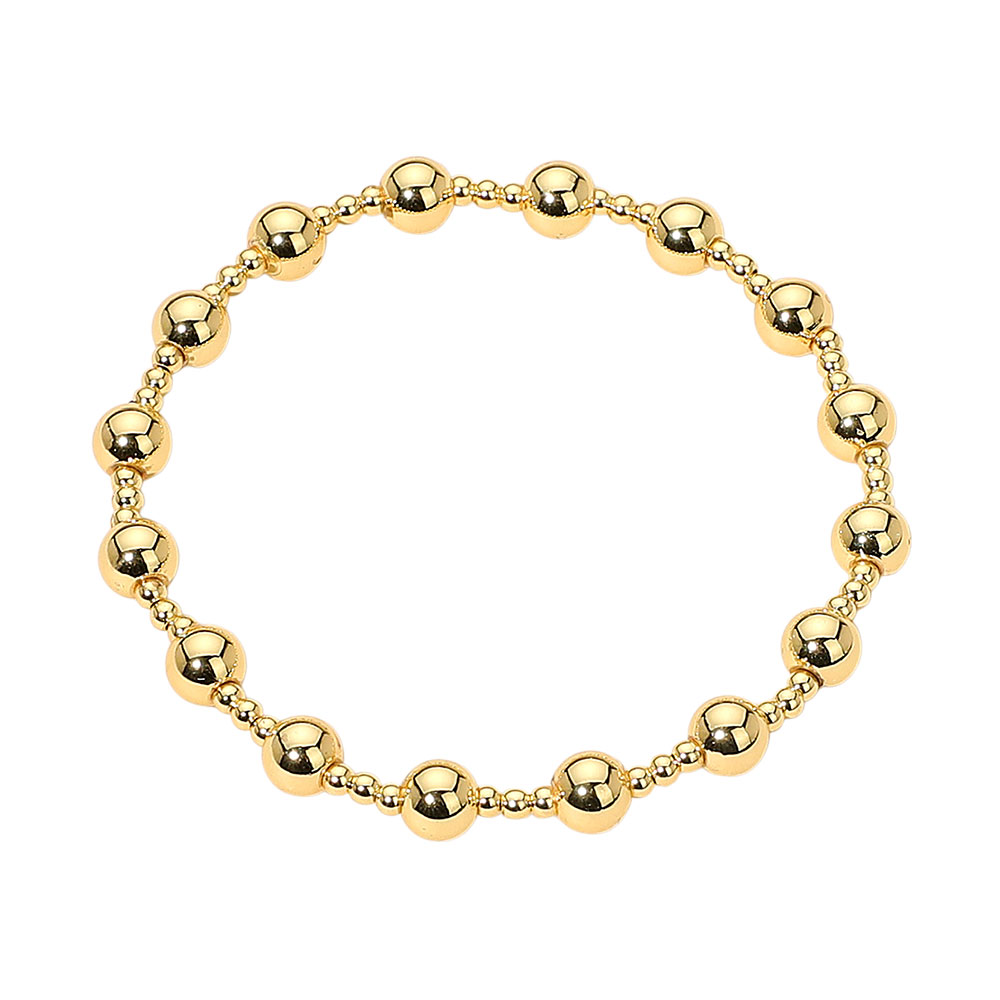 • Timeless stretch bracelet designed with alternating large and small polished stainless steel beads. Lightweight, versatile, and perfect for layering or wearing alone to add elegance to both casual and formal outfits.
