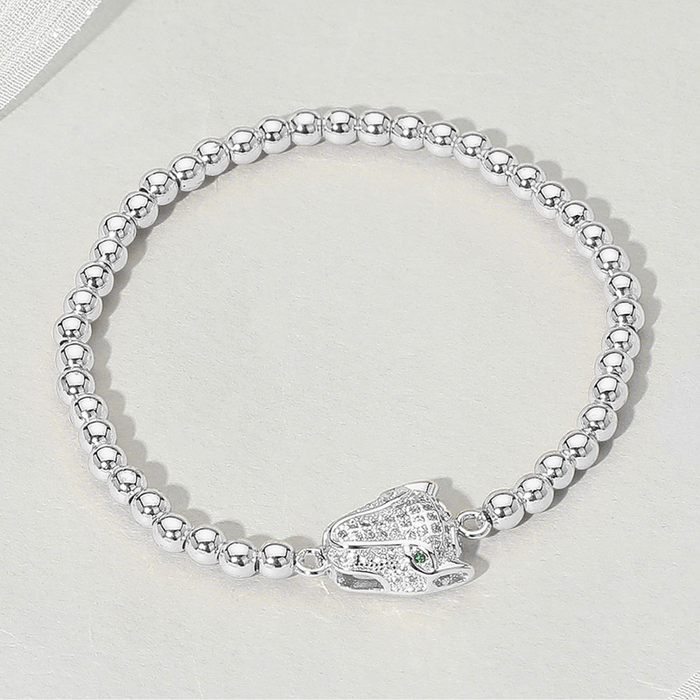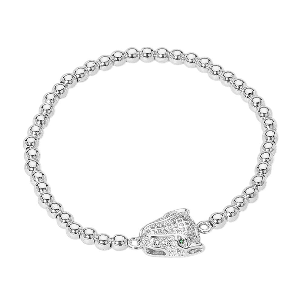 Details • Size : 0.5" H • Stretchable • Stylish beaded bracelet adorned with a detailed panther head charm encrusted with sparkling accents. A bold and elegant accessory that adds fierce sophistication to any outfit. Perfect for daily wear or gifts. • Lead and Nickel Compliant • Stainless Steel