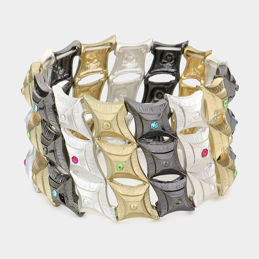 Stone Accented Diamond Metal Stretch Bracelet