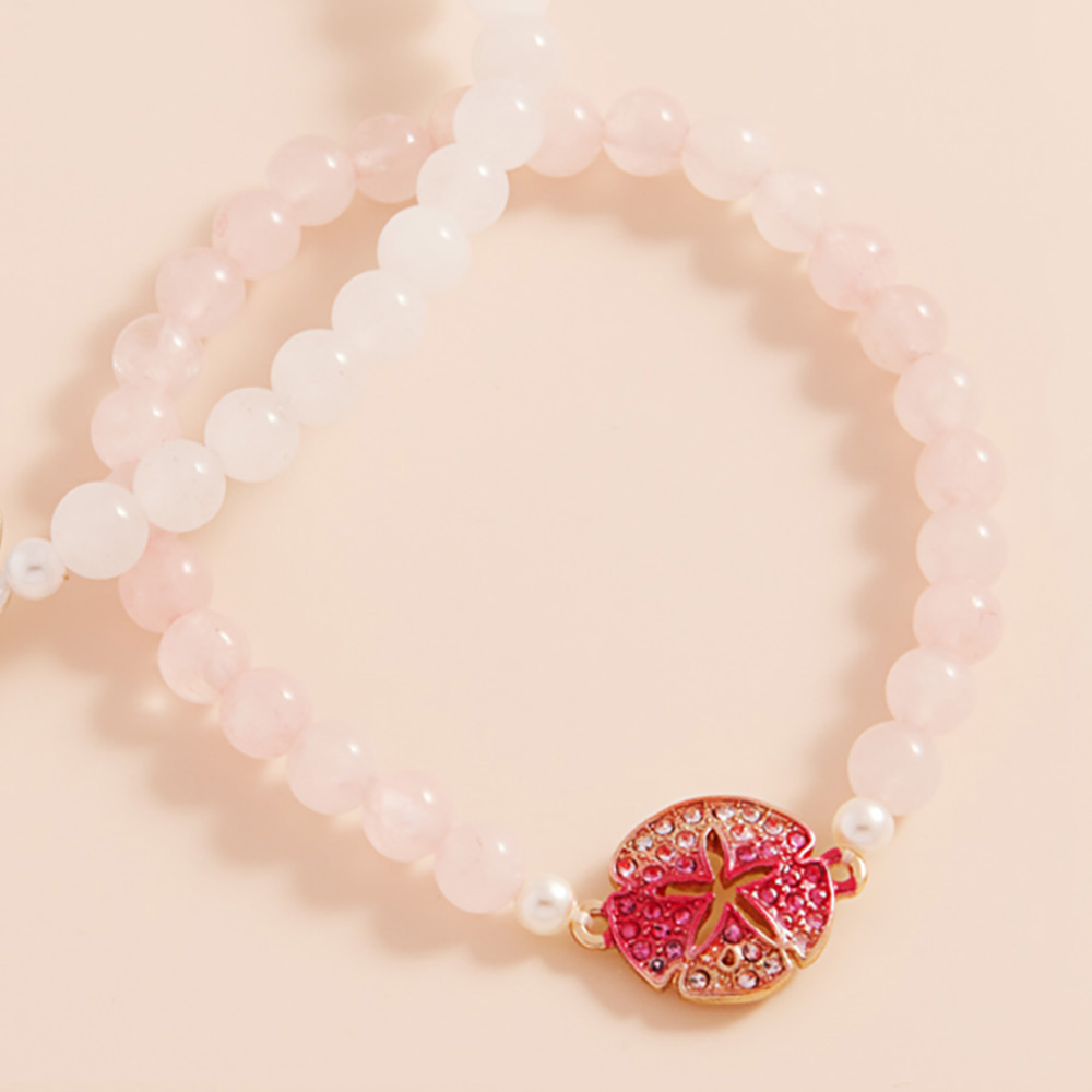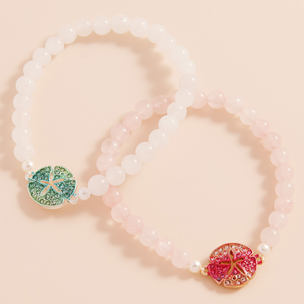 Stone Paved Sand Dollar Faceted Beaded Stretch Bracelet