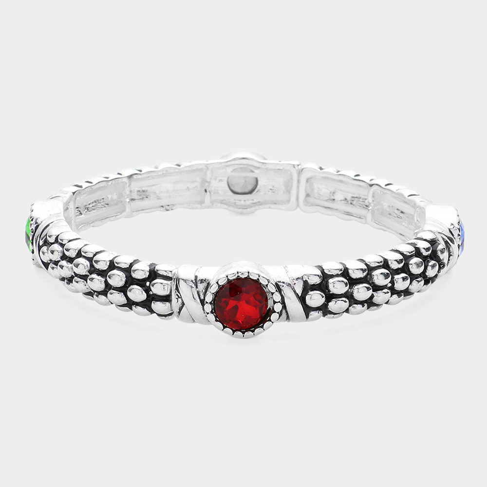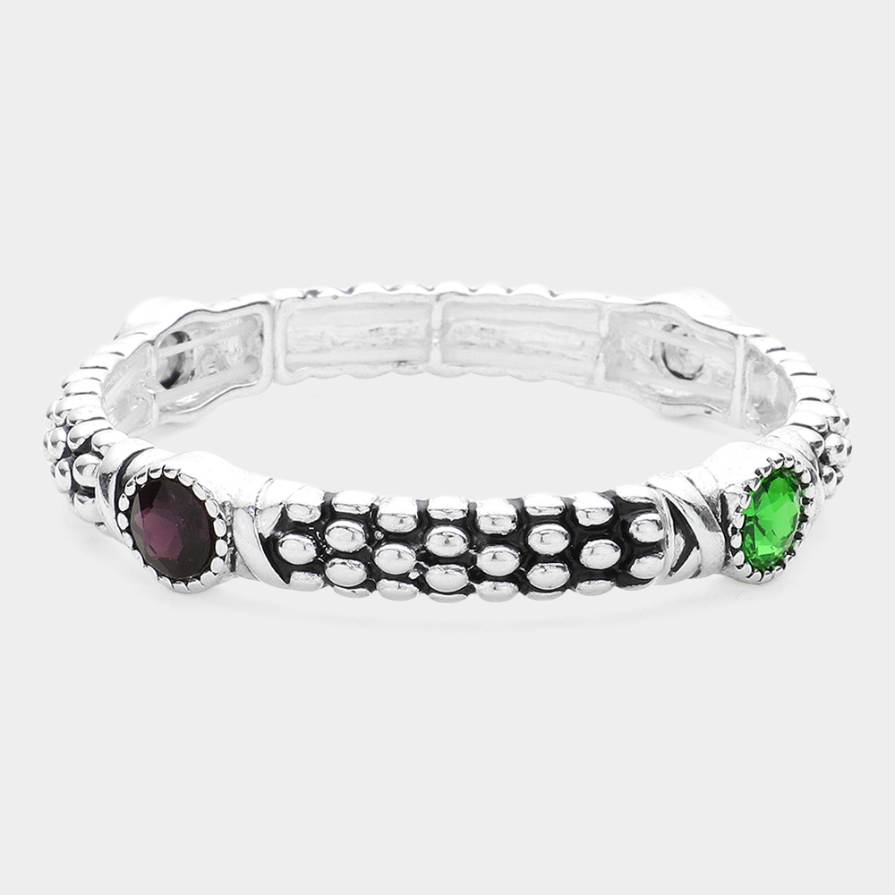 Marquise Stone Accent Antique Metal Butterfly Stretch Bracelet