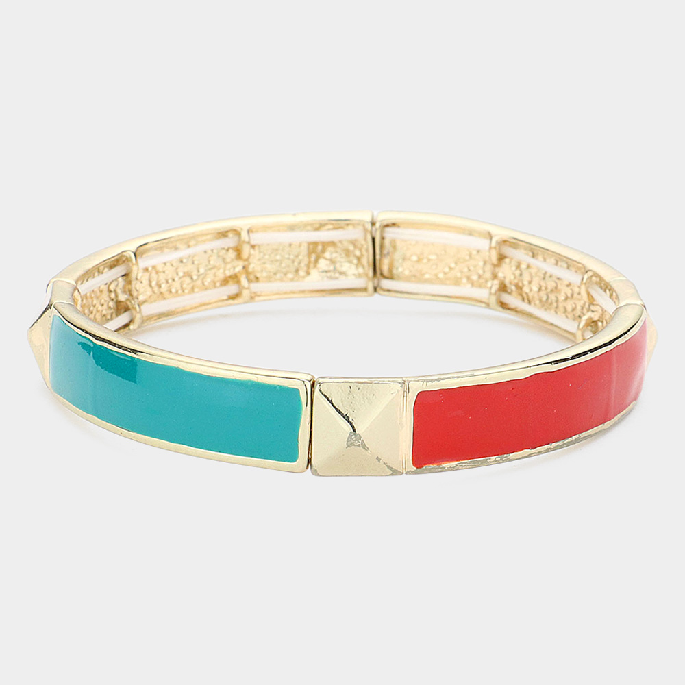 Square Stone Cluster Link Adjustable Evening Bracelet