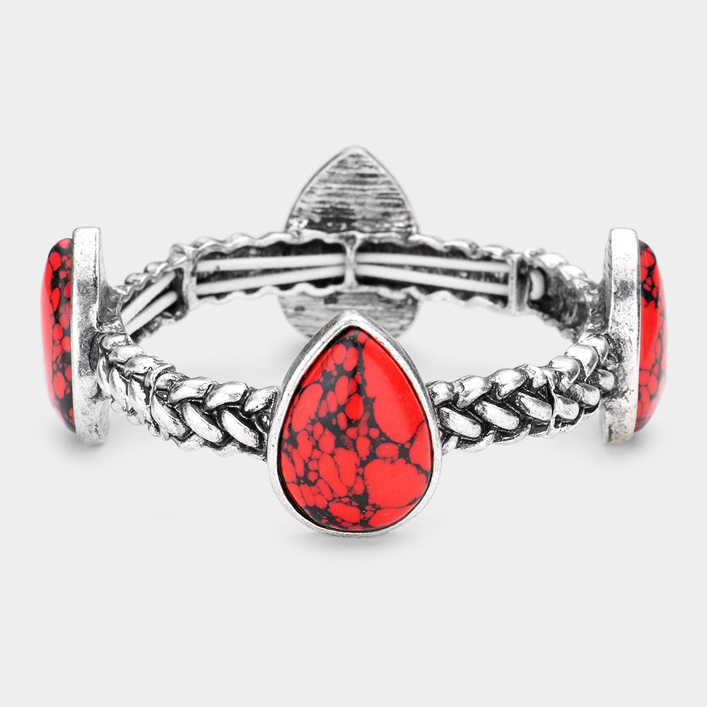 Teardrop Natural Stone Antique Metal Stretch Bracelet