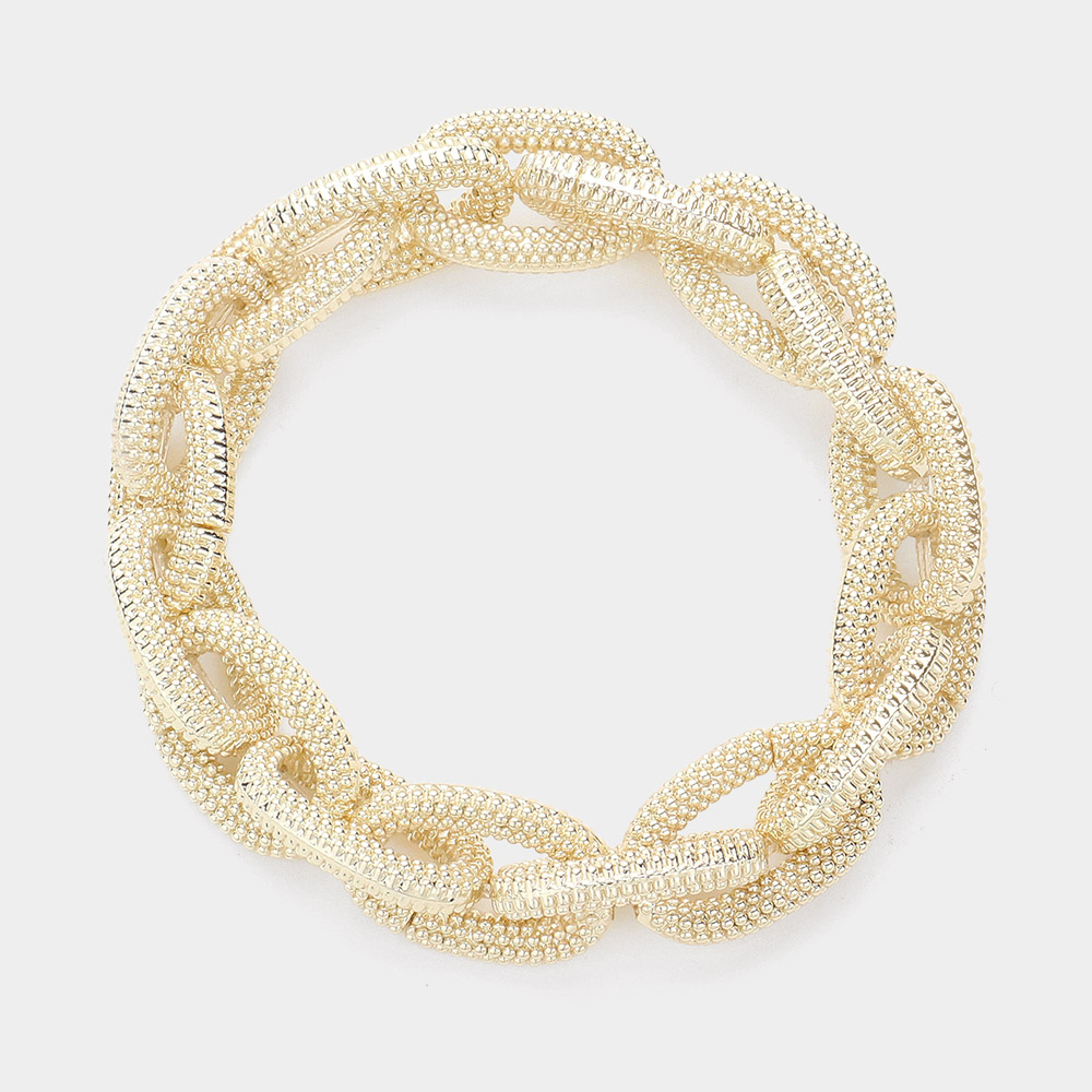 Stone Embellished Abstract Metal Link Evening Bracelet