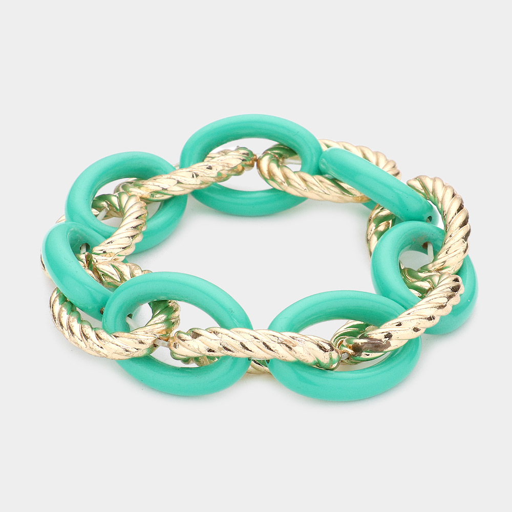 Twisted Open Metal Resin Oval Link Stretch Bracelet