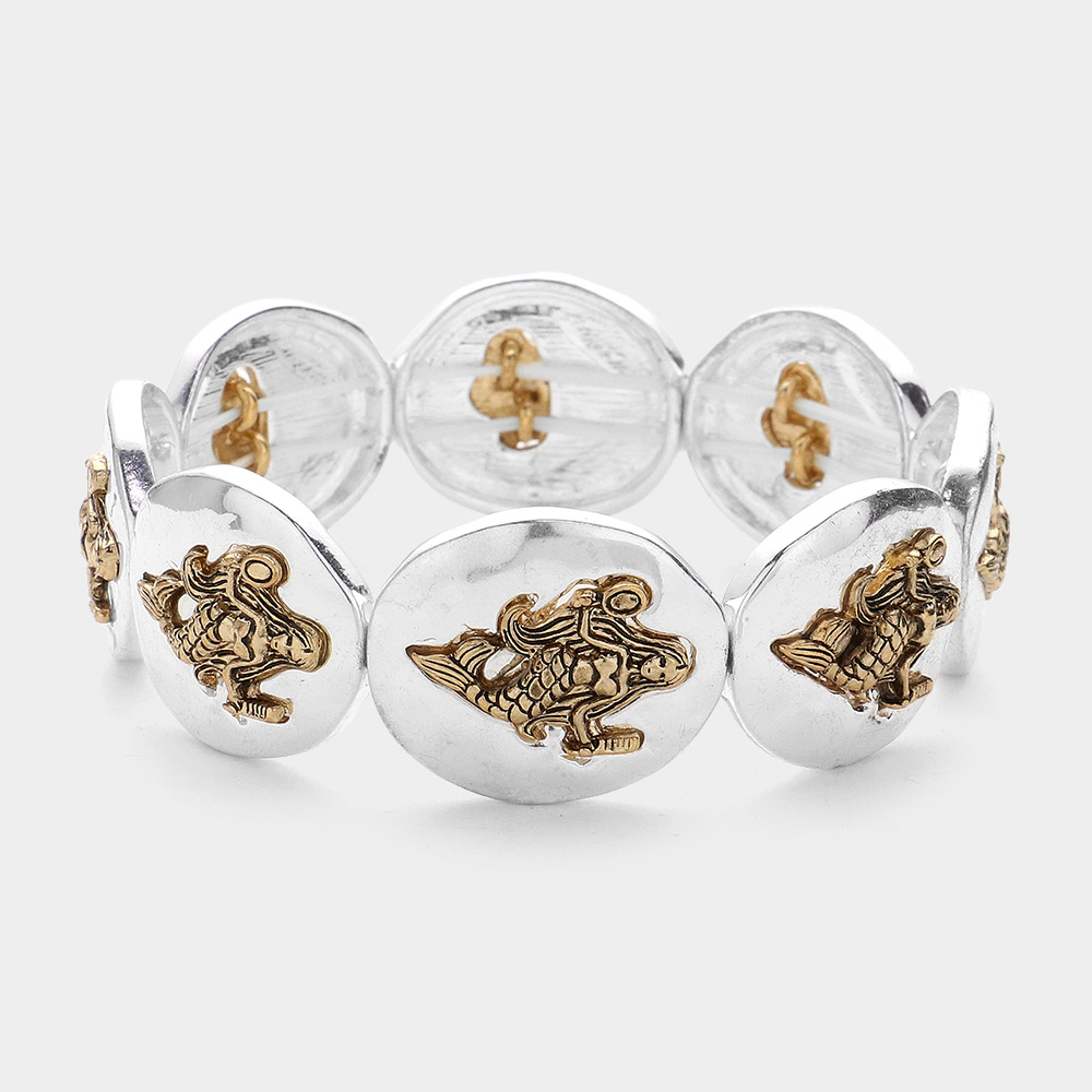 Enamel Wave Antique Metal Mermaid Link Stretch Bracelet