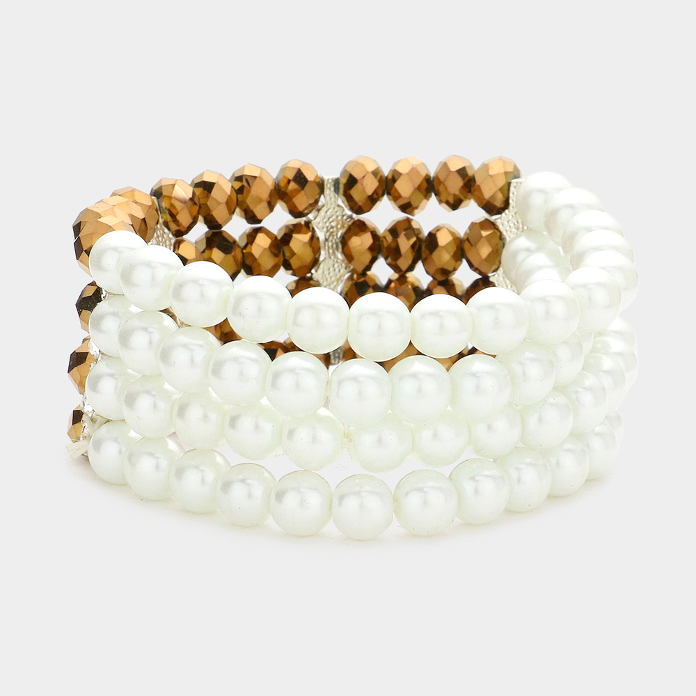Two Tone Pearl Glass Bead Stretch Bracelet