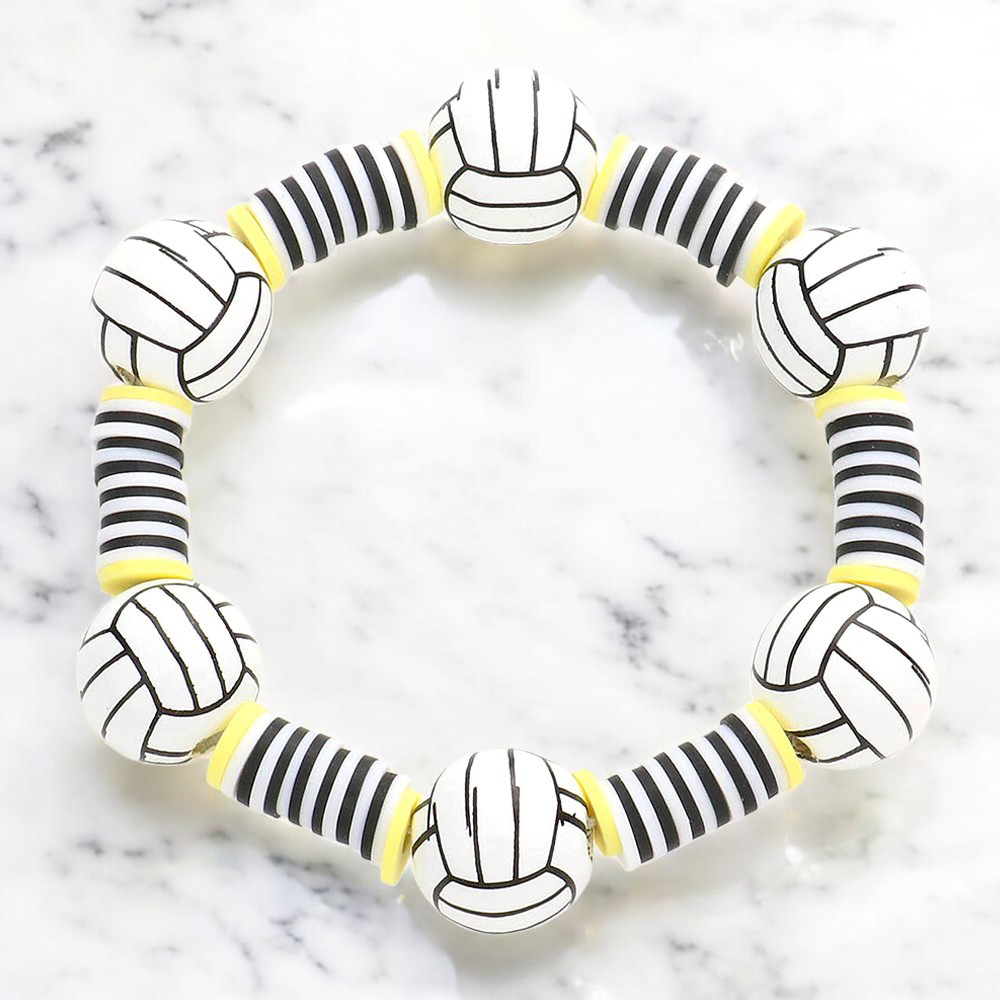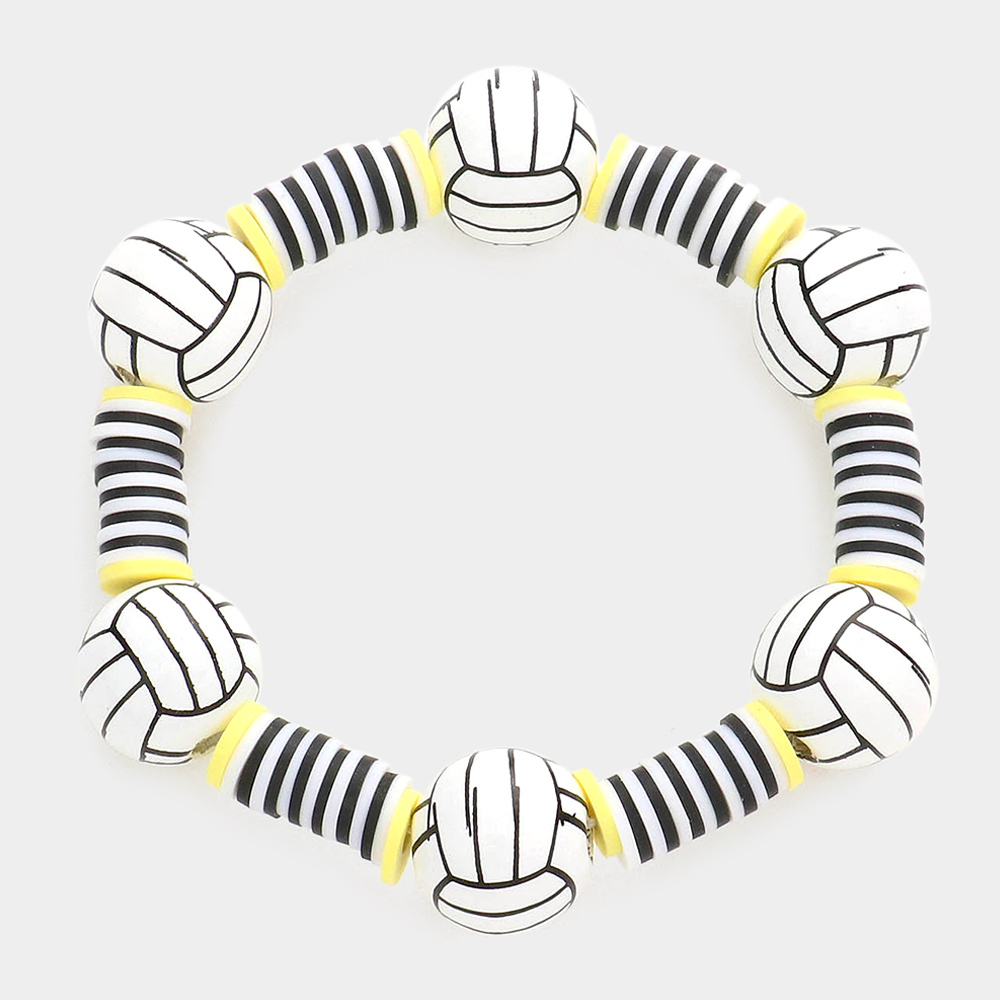 Volleyball Accented Heishi Beaded Stretch Bracelet
