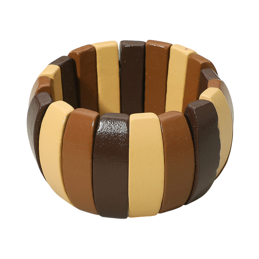 Details • Size : 1.5" H • Stretchable • Add a touch of natural charm with this multitone wooden stretch bracelet featuring alternating smooth panels in warm earthy shades. Its chunky, bold design creates a statement look while maintaining everyday versatility, making it a perfect accessory for casual or boho styles. • Lead and Nickel Compliant