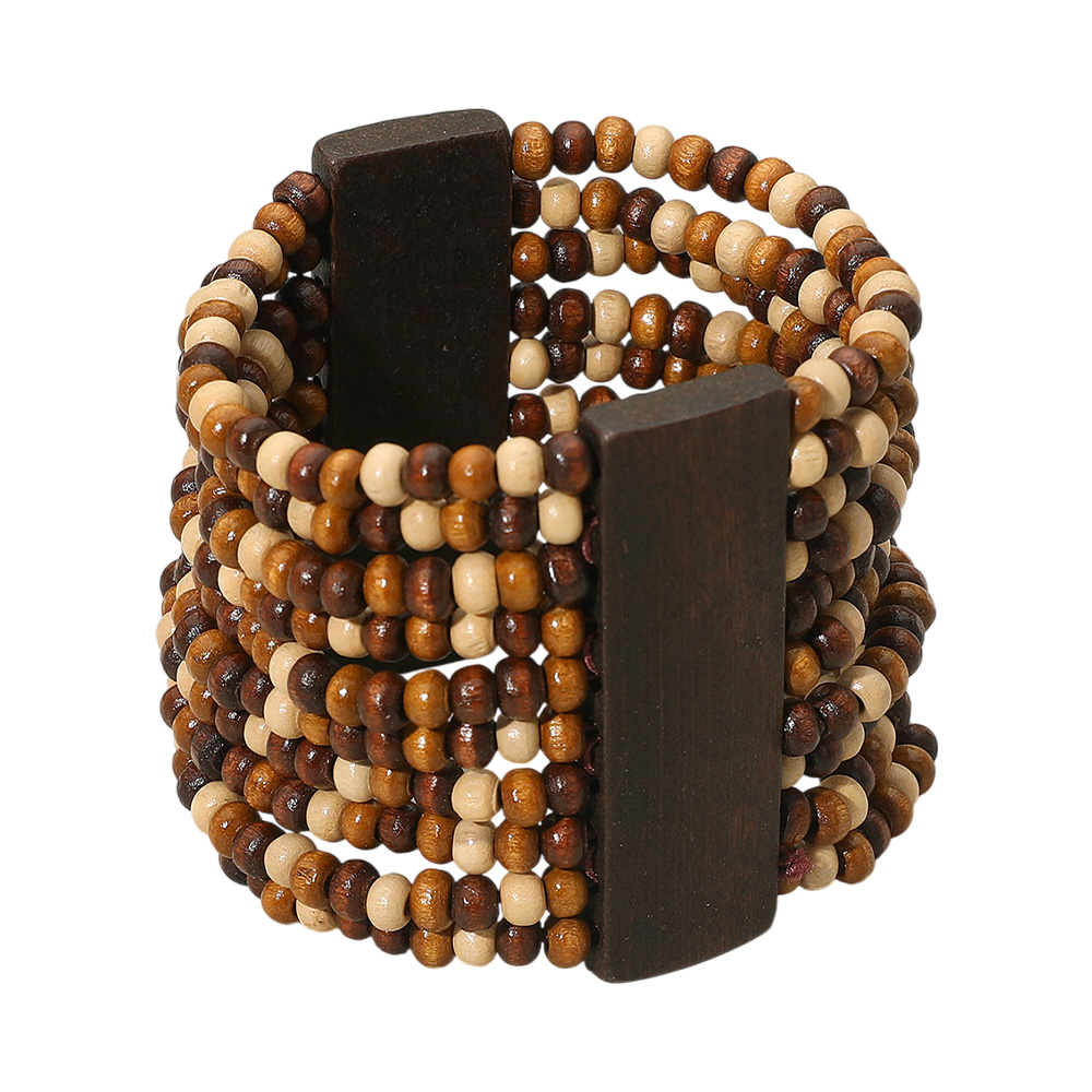 • Add a touch of nature-inspired style with this wide beaded bracelet, crafted from smooth beads in warm earthy tones. Designed with multiple rows and sturdy wooden accents, it brings a bold yet versatile look, perfect for everyday wear or enhancing bohemian-inspired outfits.