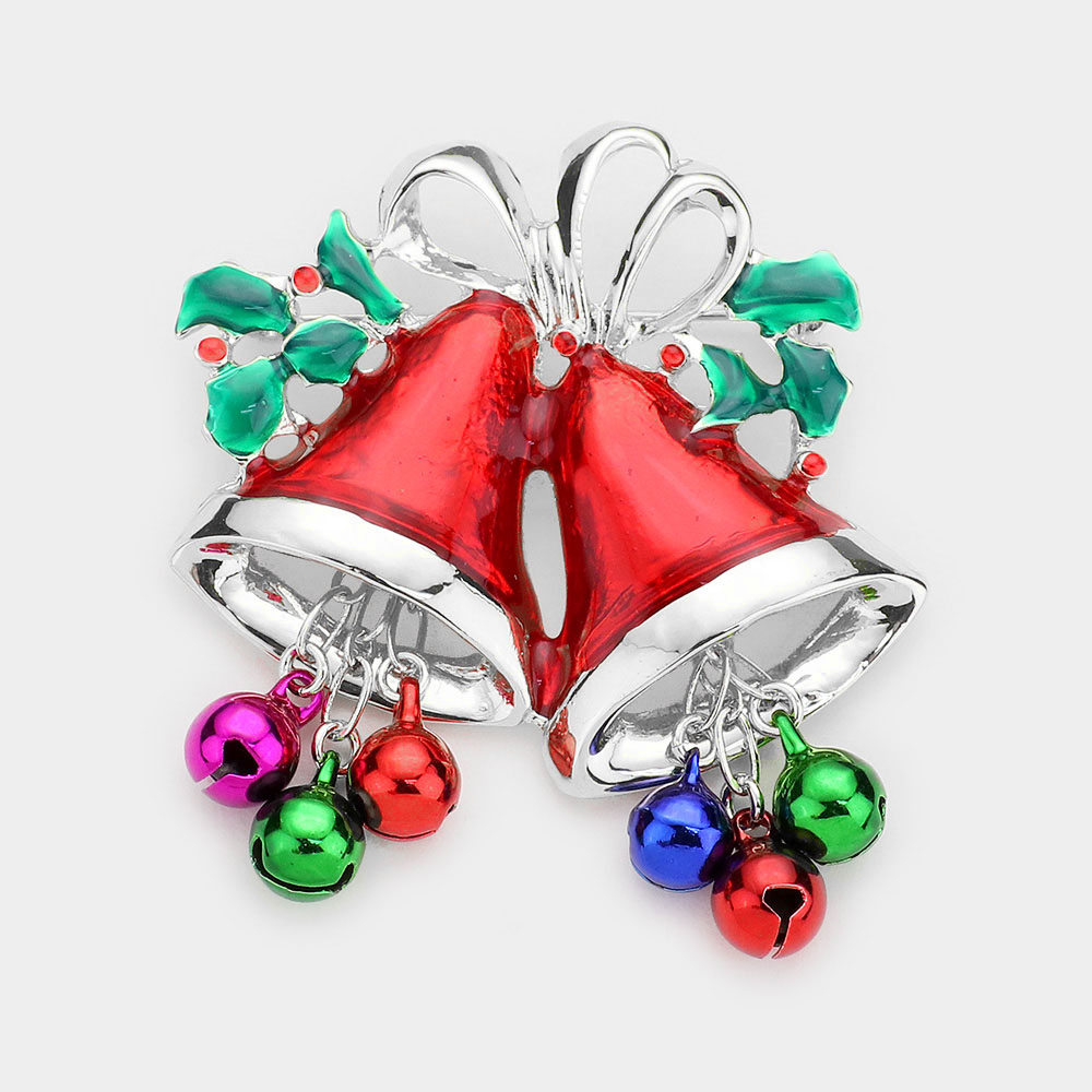 Details • Size : 2.2" X 2.5" • Pin Brooch • Celebrate the season with this eye-catching brooch featuring a pair of festive bells accented by holly leaves and dangling jingle charms. A joyful touch to complete your holiday look. • Lead and Nickel Compliant