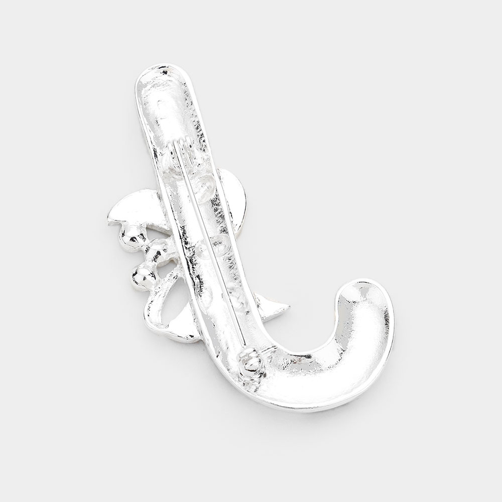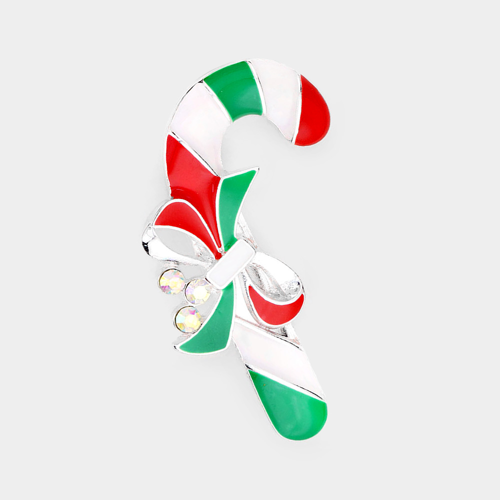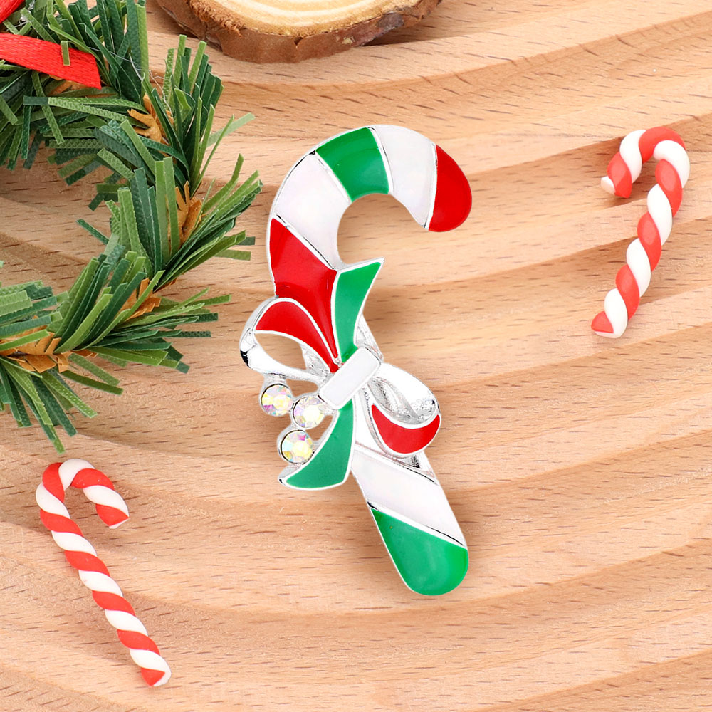 Details • Size : 1.3" X 2.2" • Pin Brooch • Celebrate the season with this cheerful candy cane brooch, featuring a decorative bow and sparkling accents. Perfect for holiday parties or as a playful accessory to brighten your winter wardrobe. • Lead and Nickel Compliant