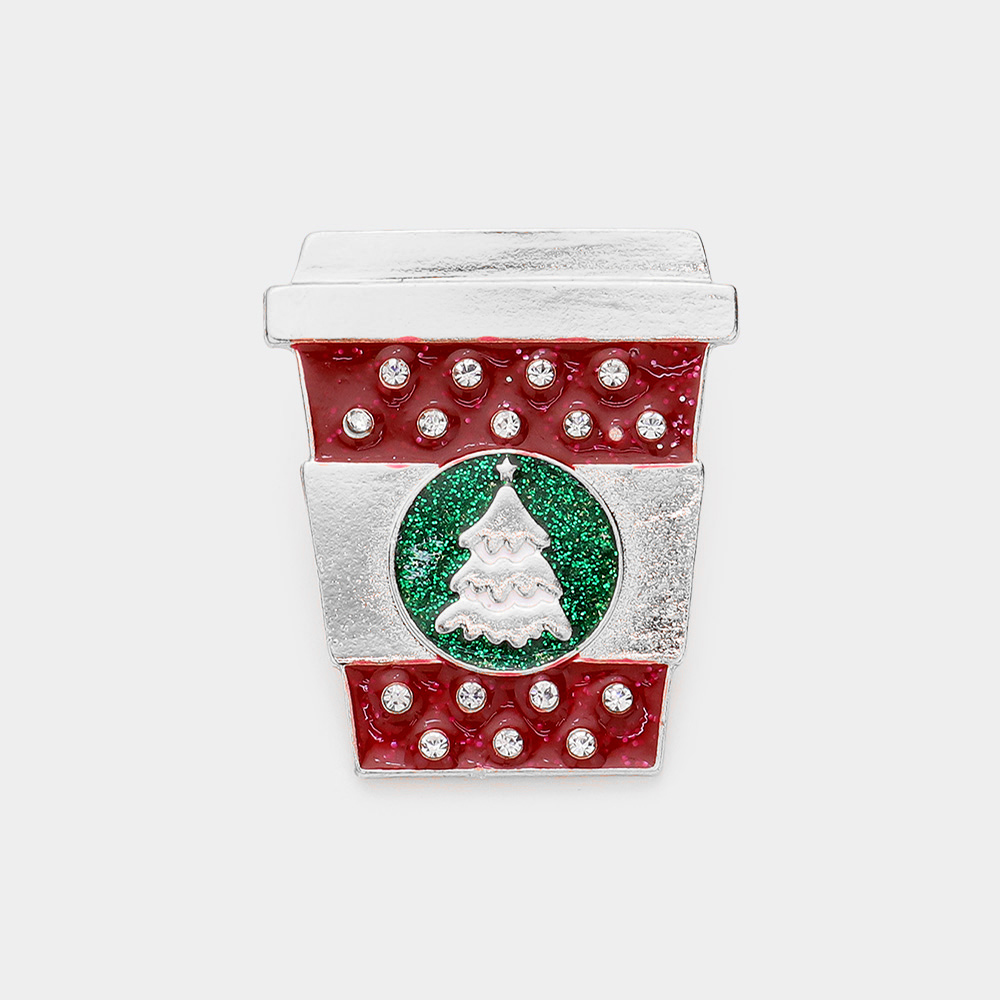 Enamel Christmas Tree Pointed Latte Pin Brooch