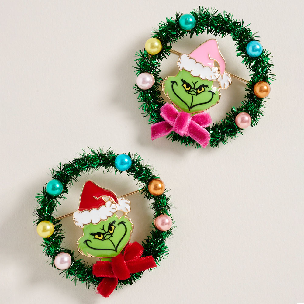 • Celebrate the season with a playful twist using this holiday wreath brooch, featuring a mischievous character in a festive hat. A fun and unique accessory perfect for adding cheer to your winter outfits.