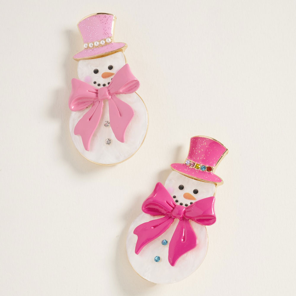 Holiday Bow Accent Snowman Earrings