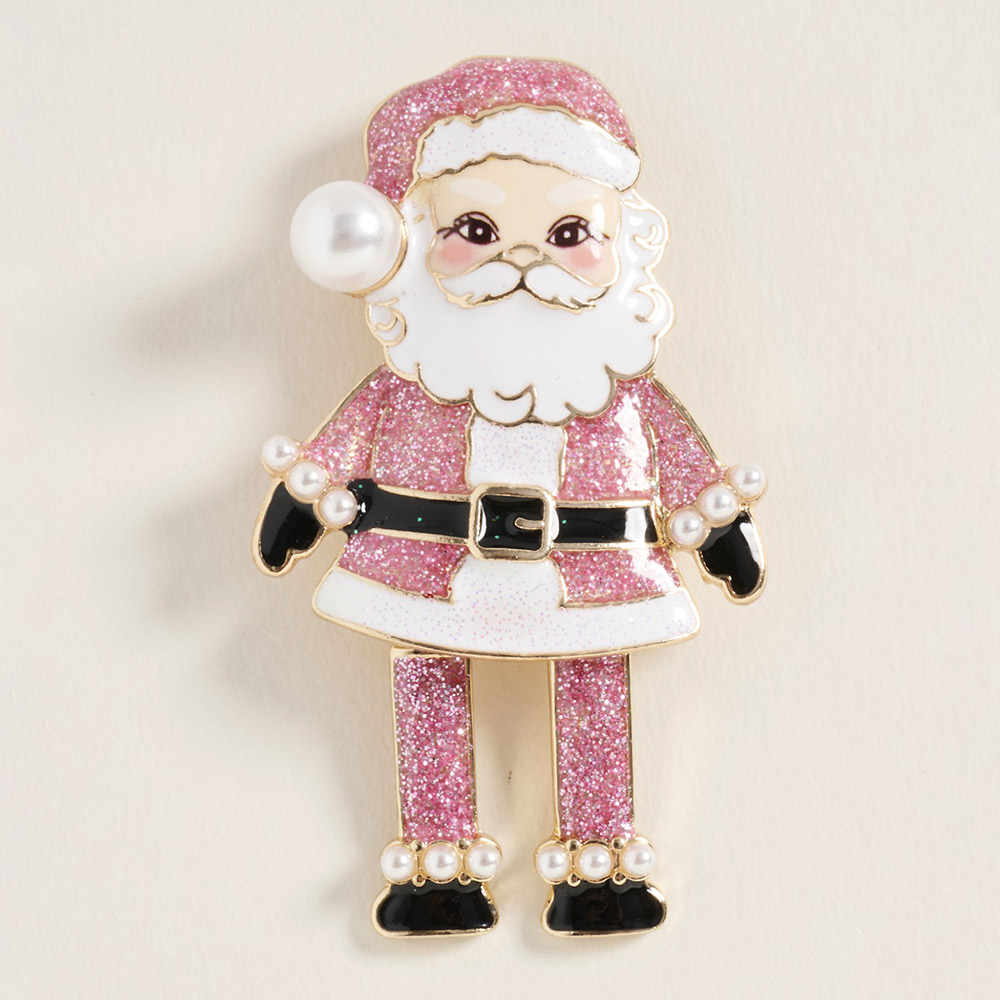 • Add festive cheer with this glittery Santa Claus brooch, featuring sparkling details and pearl accents. A charming accessory for holiday outfits, Christmas parties, or gifting with seasonal flair.