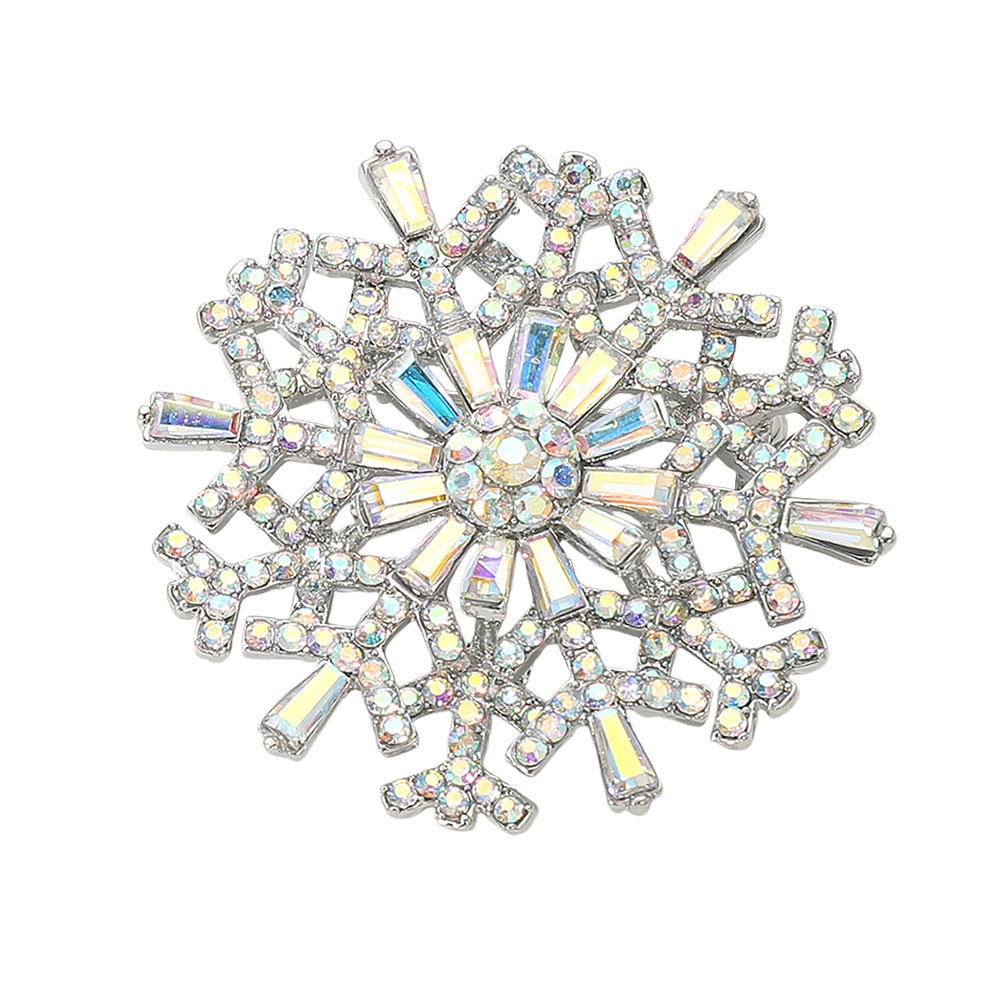 • Shimmer in winter elegance with this snowflake brooch adorned with iridescent crystals and intricate detailing. A radiant accessory that captures light beautifully, perfect for festive outfits, seasonal events, or adding frosty sparkle to everyday looks.