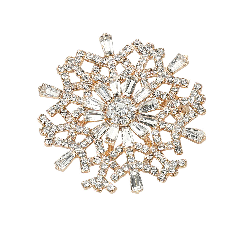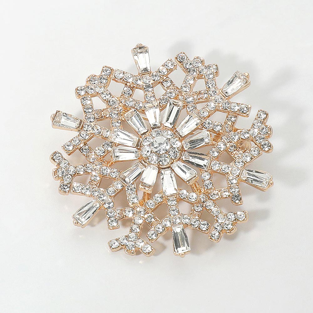 Details • Size : 2" X 2" • Pin Brooch • Shimmer in winter elegance with this snowflake brooch adorned with iridescent crystals and intricate detailing. A radiant accessory that captures light beautifully, perfect for festive outfits, seasonal events, or adding frosty sparkle to everyday looks. • Lead and Nickel Compliant