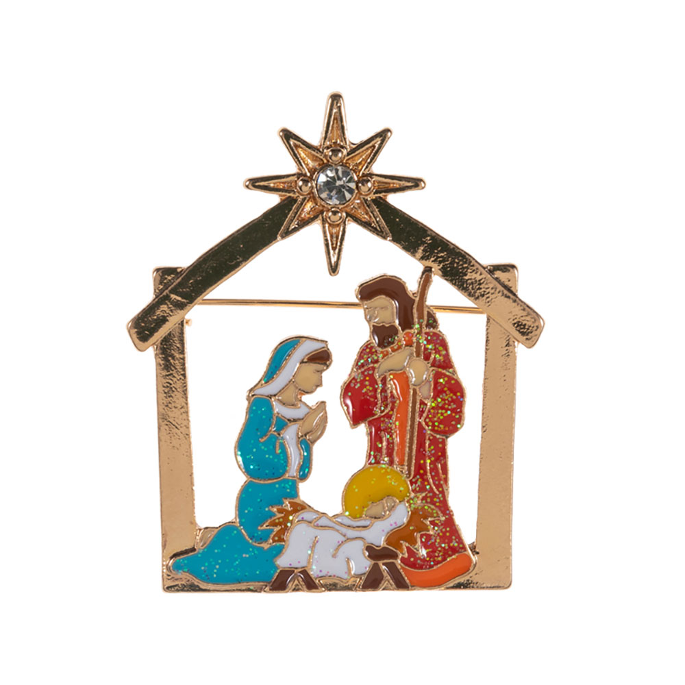Details • Size : 1.7" X 2" • Pin Brooch • Honor the true spirit of Christmas with this nativity scene brooch featuring the Holy Family and a guiding star. A meaningful accessory perfect for religious celebrations and holiday attire. • Lead and Nickel Compliant