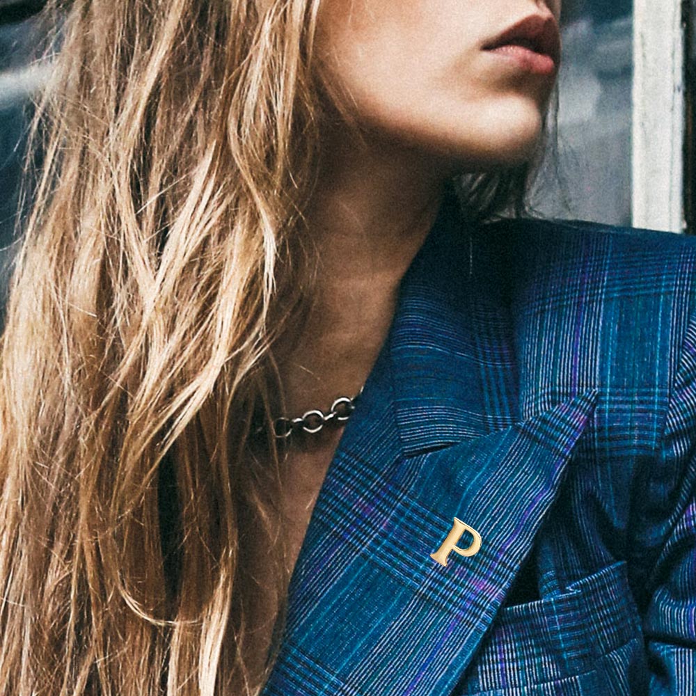 -P- Metal Initial Monogram Lapel Mini Pin Brooch