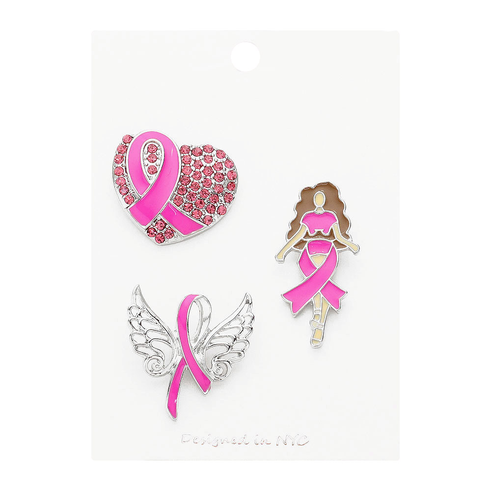 Details • Size : 1" L - 1.5" L • Pin Brooch • Support a meaningful cause with this symbolic brooch set featuring heart, angel wings, and woman ribbon designs. Ideal for lapels, bags, or gifts that inspire awareness and hope. • Lead and Nickel Compliant