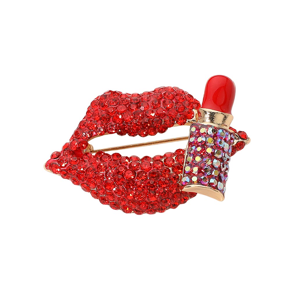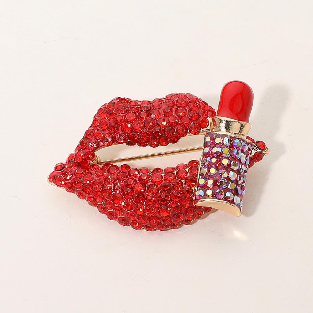 Bling Studded Lip and Lipstick Pin Brooch