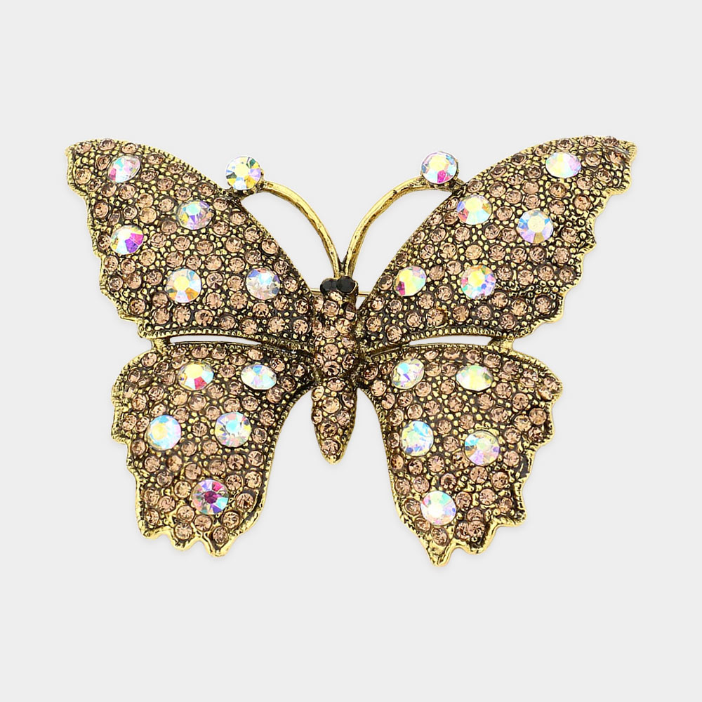 Rhinestone Embellished Butterfly Pendant Accented Tennis Chain Evening Necklace