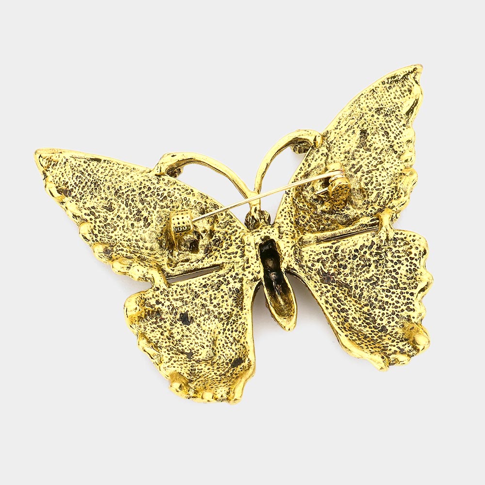 Marquise Stone Accent Antique Metal Butterfly Hoop Earrings