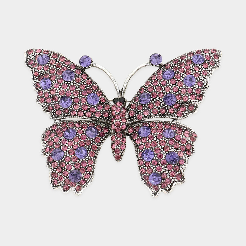 Stone Paved Heart Butterfly Bow Charm Beaded Necklace