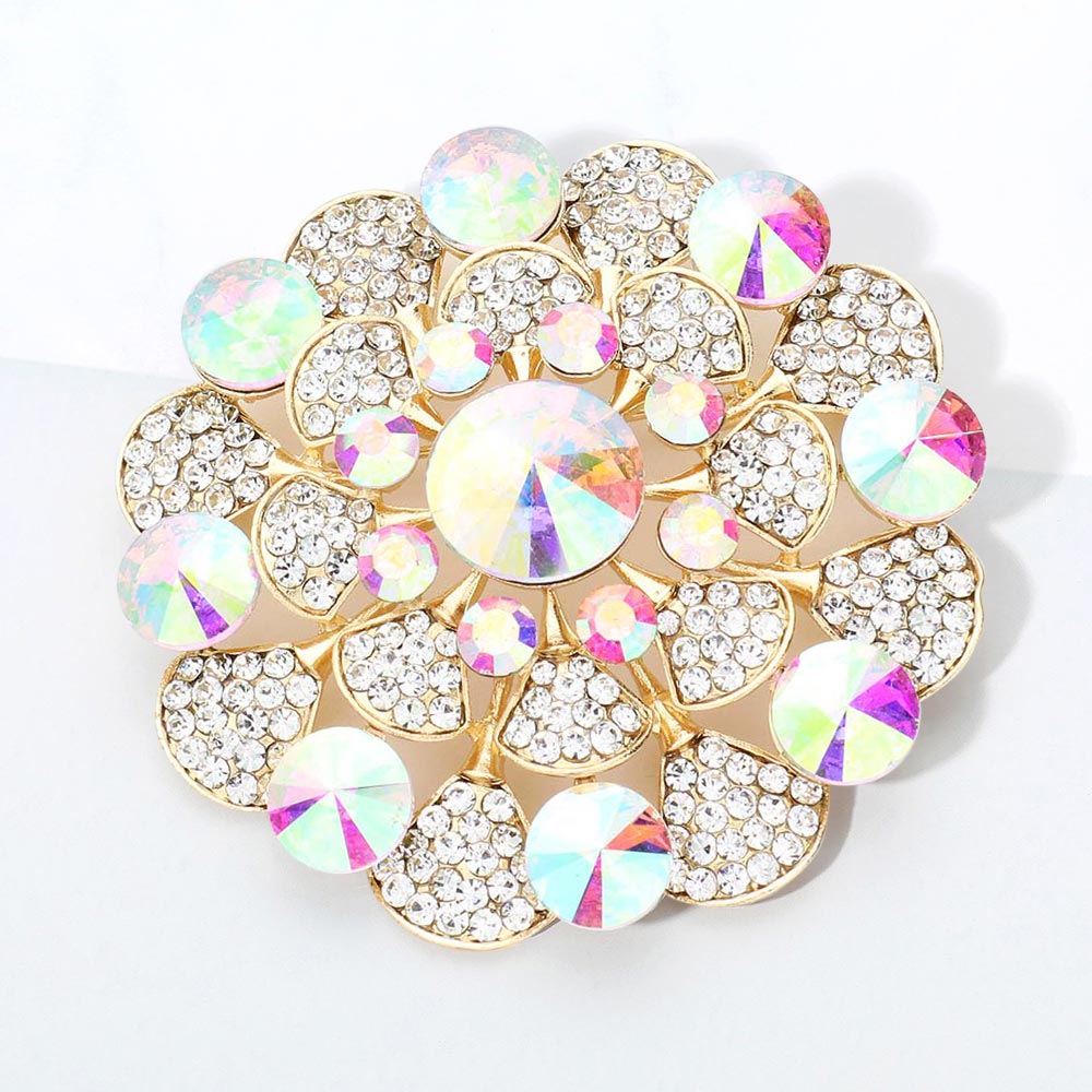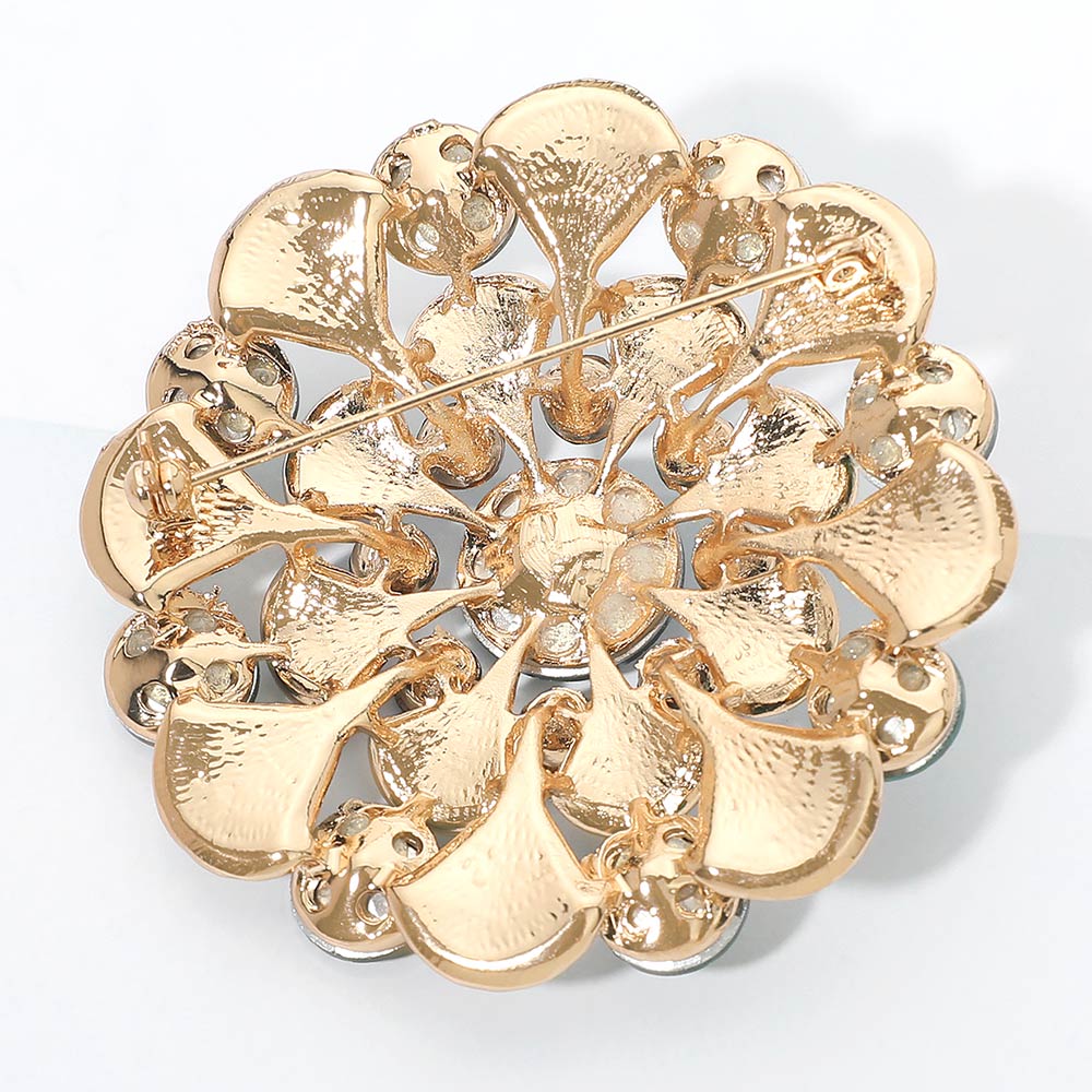 • This stunning round crystal flower brooch features layered gem accents that create a dazzling floral design. Perfect for elevating any outfit, it adds a touch of vintage-inspired glamour and refined brilliance to jackets, scarves, or formal attire.