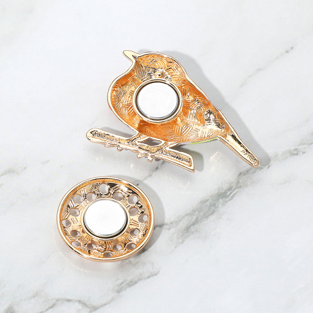 Details • Size : 2.6" X 1.6" • Magnetic Closure • No Pinhole Damage • Charming bird enamel brooch pin designed with lifelike detail, perched on a delicate branch. A stylish accessory for jackets, scarves, or bags, bringing a touch of nature-inspired elegance and charm to any outfit. • Lead and Nickel Compliant