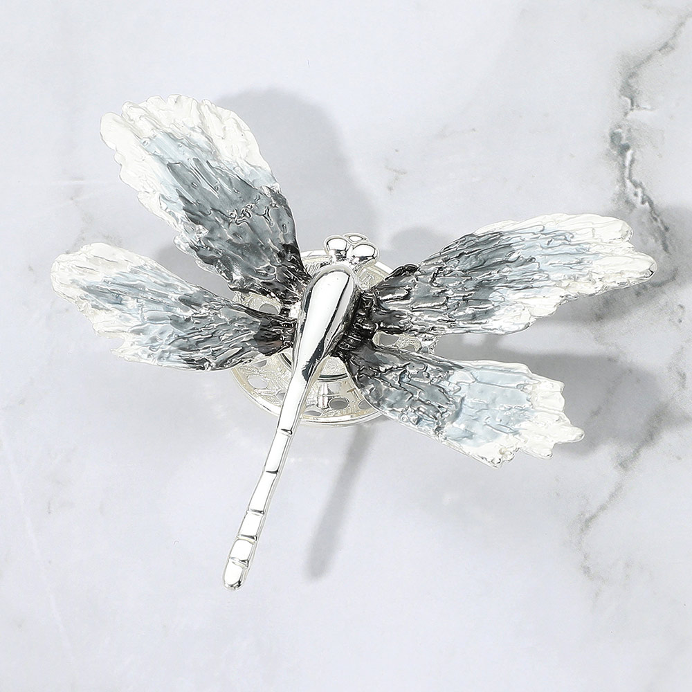 Details • Size : 3.5" X 3.25" • Magnetic Closure • No Pinhole Damage • Add a whimsical touch to your look with this dragonfly enamel brooch pin, featuring beautifully detailed wings and a sleek metallic body. Perfect for accessorizing jackets, scarves, or bags, this pin captures the delicate charm of nature with artistic craftsmanship and style. • Lead and Nickel Compliant