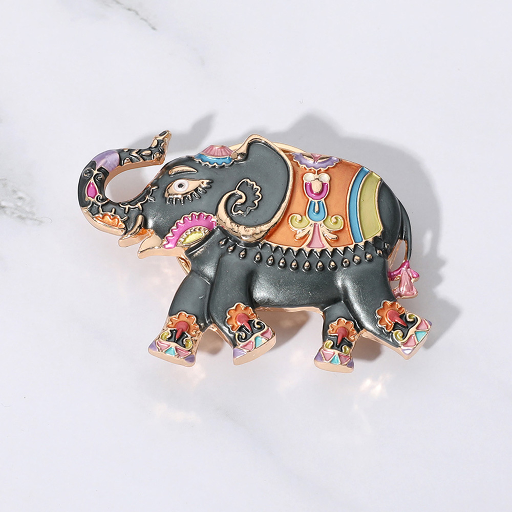 Details • Size : 2.5" X 1.8" • Magnetic Closure • No Pinhole Damage • Elegant elephant brooch showcasing artistic details and ornamental patterns. A unique statement accessory perfect for adding character to any outfit or accessory like bags, scarves, or hats. • Lead and Nickel Compliant