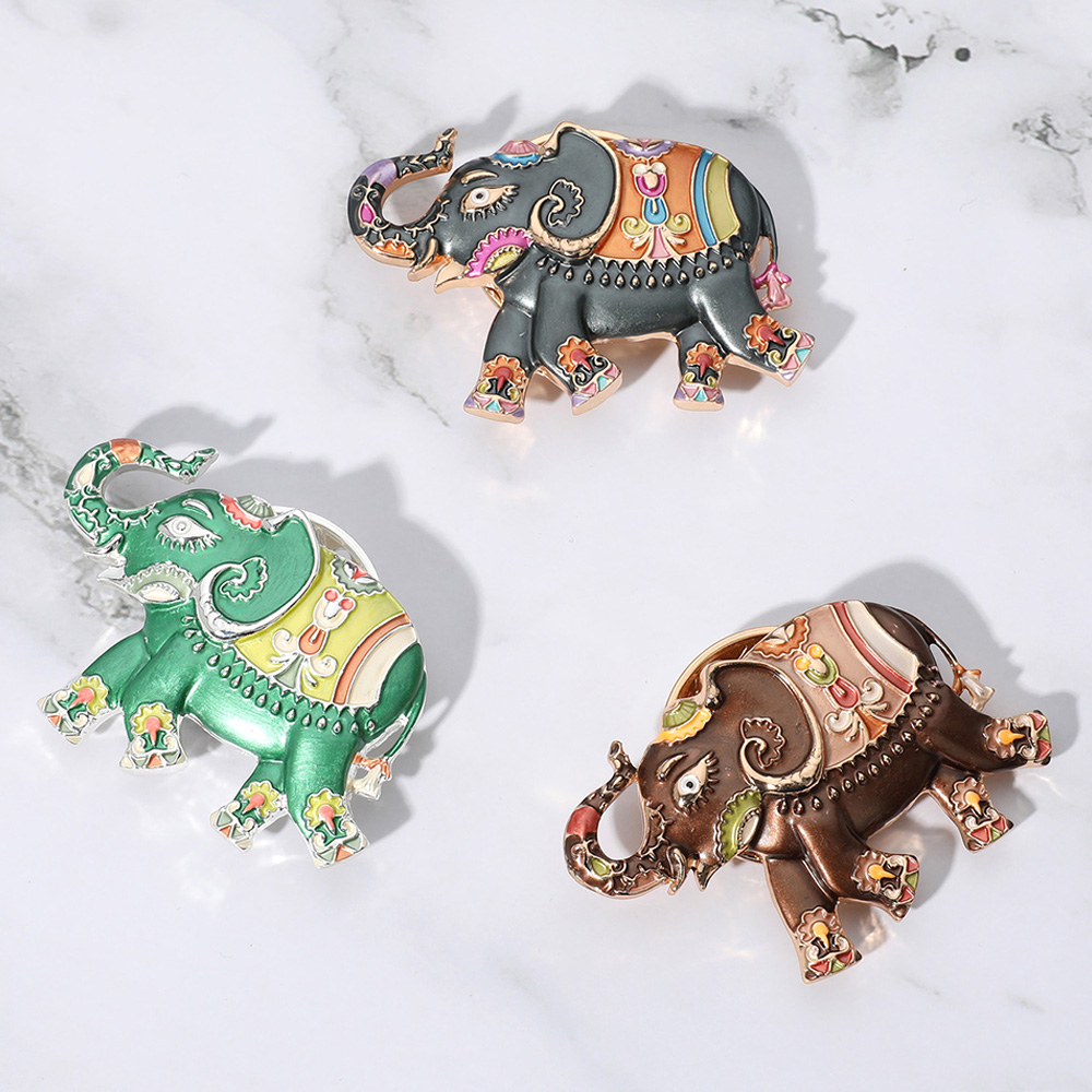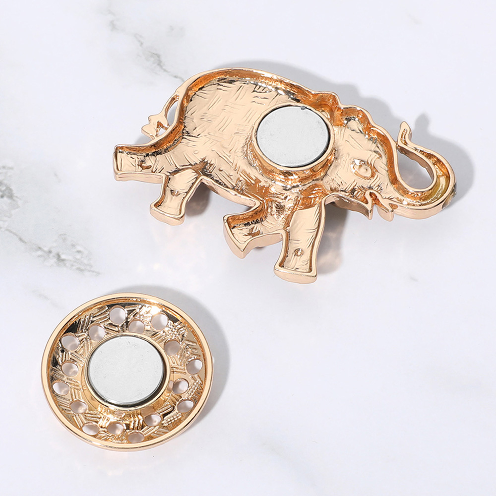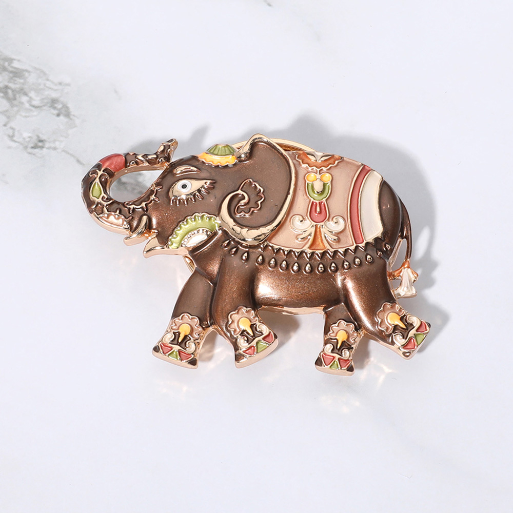 Details • Size : 2.5" X 1.8" • Magnetic Closure • No Pinhole Damage • Elegant elephant brooch showcasing artistic details and ornamental patterns. A unique statement accessory perfect for adding character to any outfit or accessory like bags, scarves, or hats. • Lead and Nickel Compliant