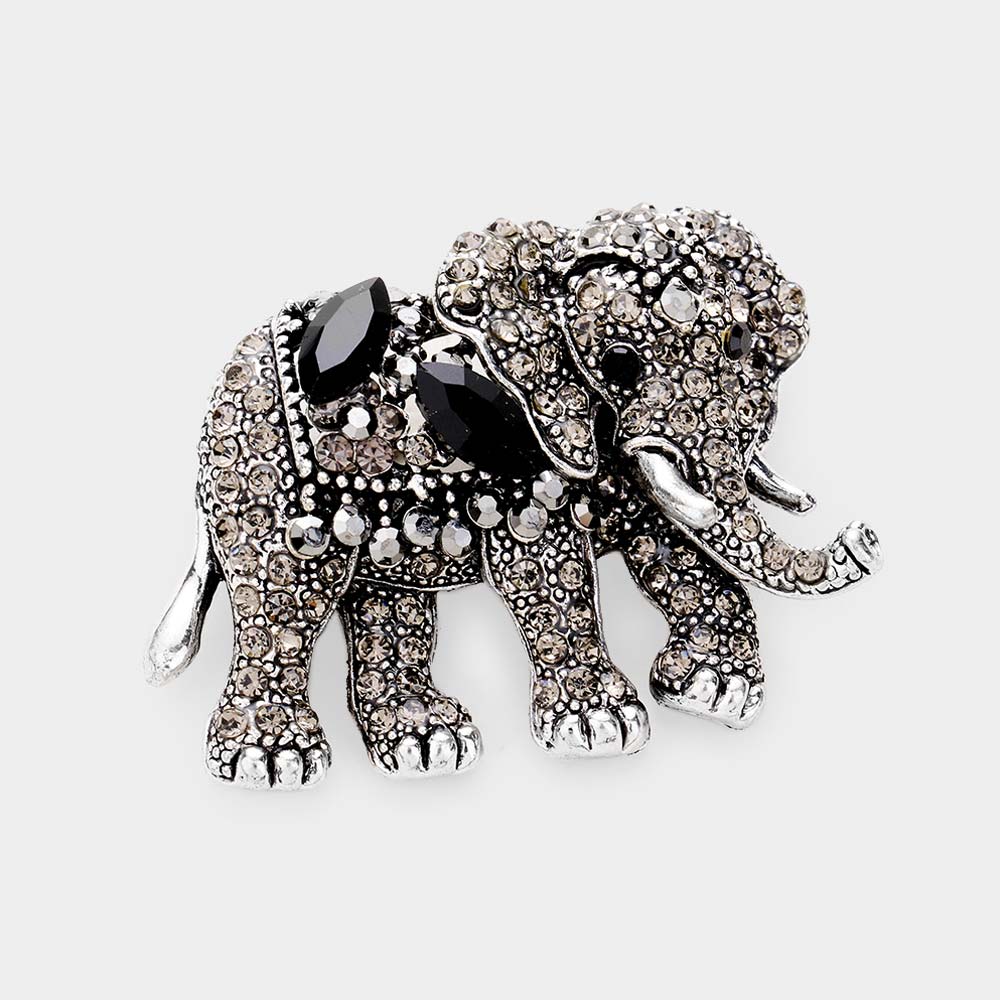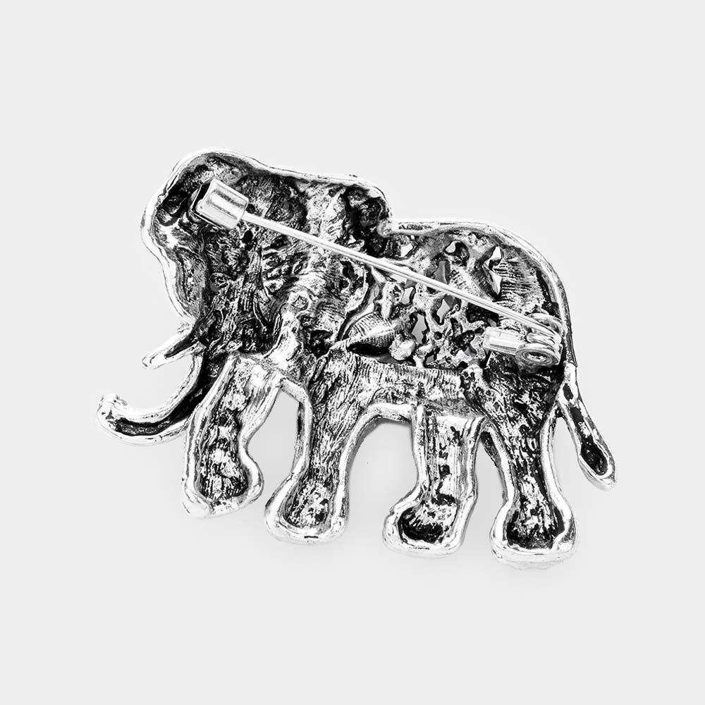 Crystal Floral Rhinestone Elephant Pin Brooch