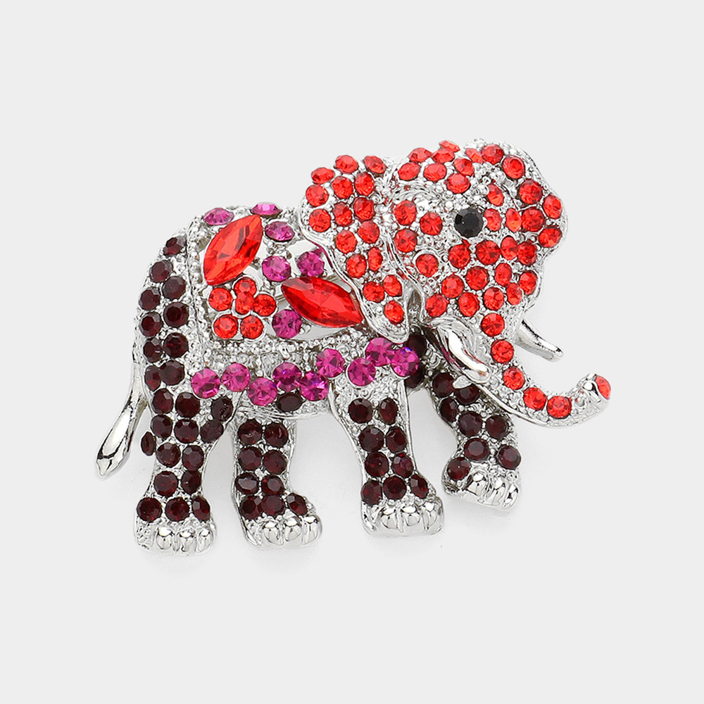 Crystal Floral Rhinestone Elephant Pin Brooch