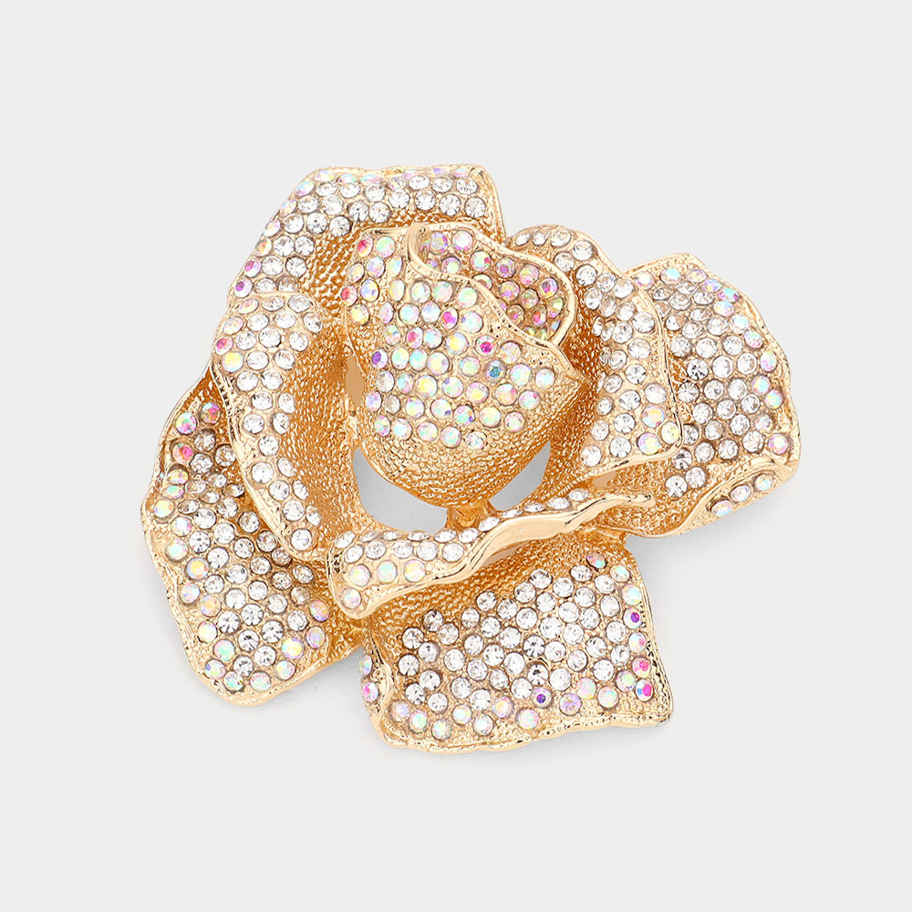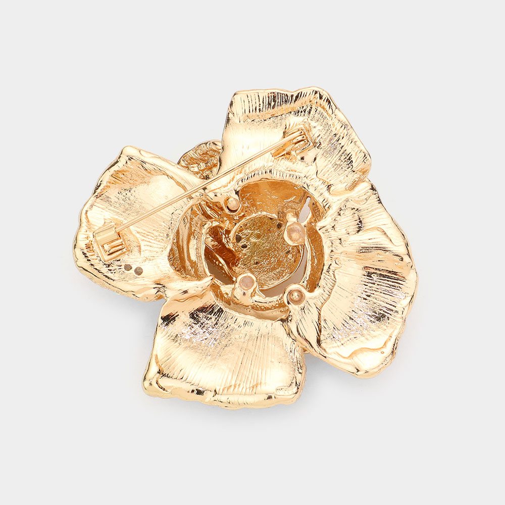 Flower Stone Cluster Pointed Glass Stone Embellished Leaf Pin Brooch