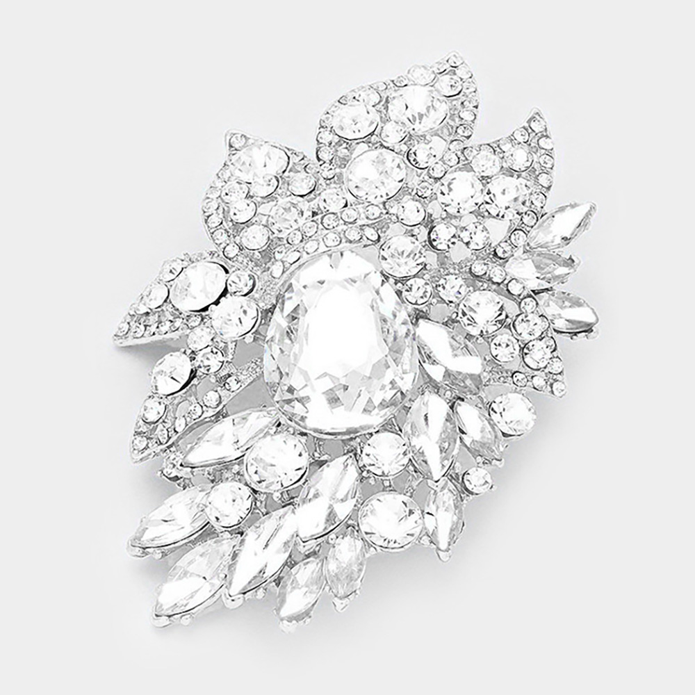 CZ Stone Embellished Marquise Stone Cluster Leaf Tip Cuff Bracelet